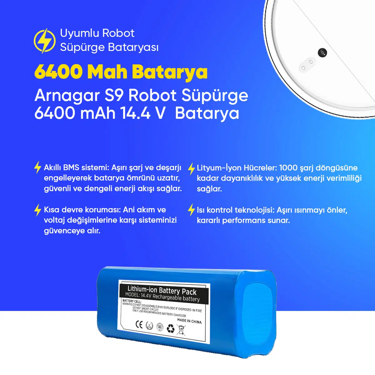 | Etiketler | Arnagar S9 Robot Süpürge 6400 mAh 14.4 V Batarya – Orjinal Uyumlu Uzun Ömürlü, Yüksek Performans Pil |