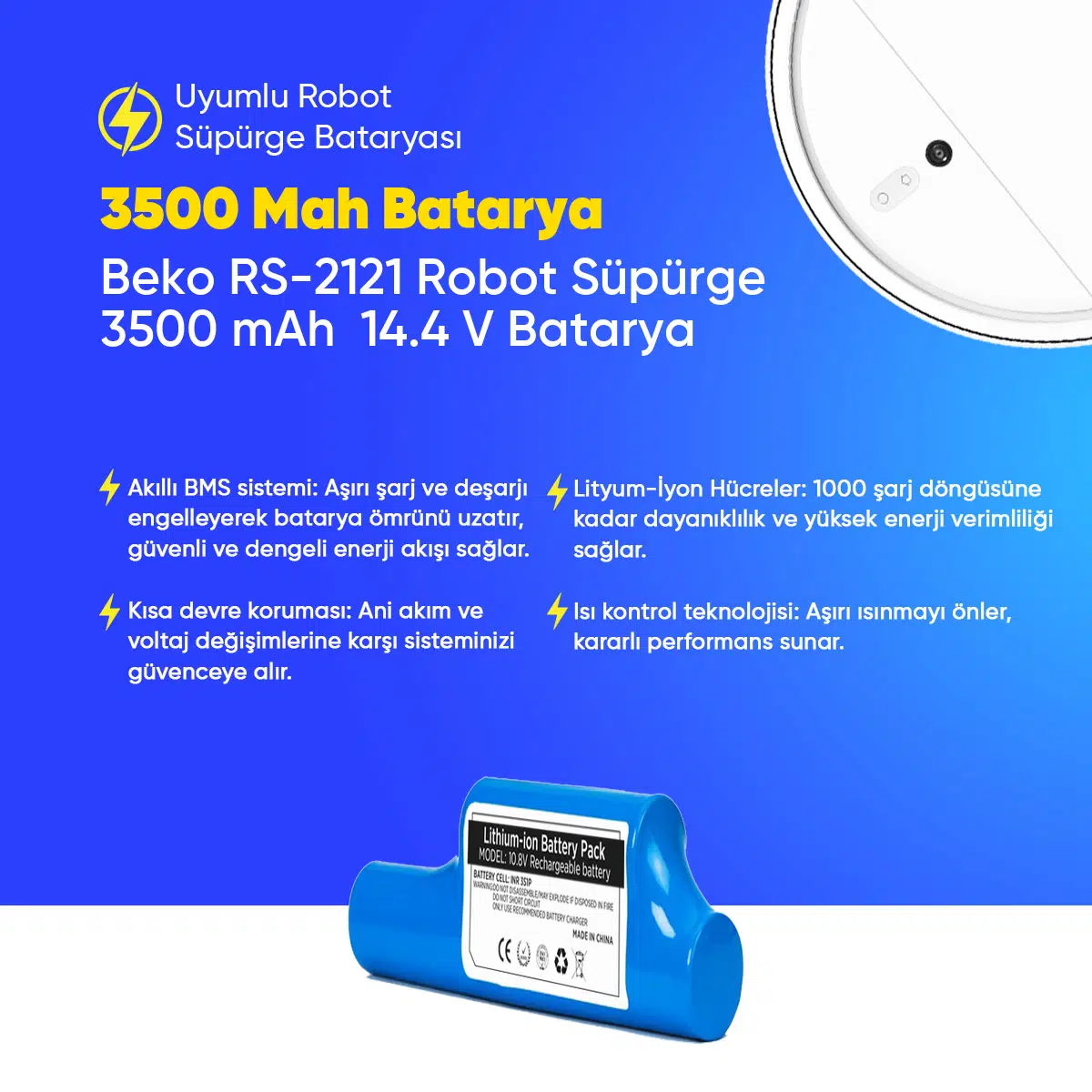 | Etiketler | Beko RS-2121 Robot Süpürge 3500 mAh 14.4 V Batarya – Orjinal Uyumlu Uzun Ömürlü, Yüksek Performans Pil |