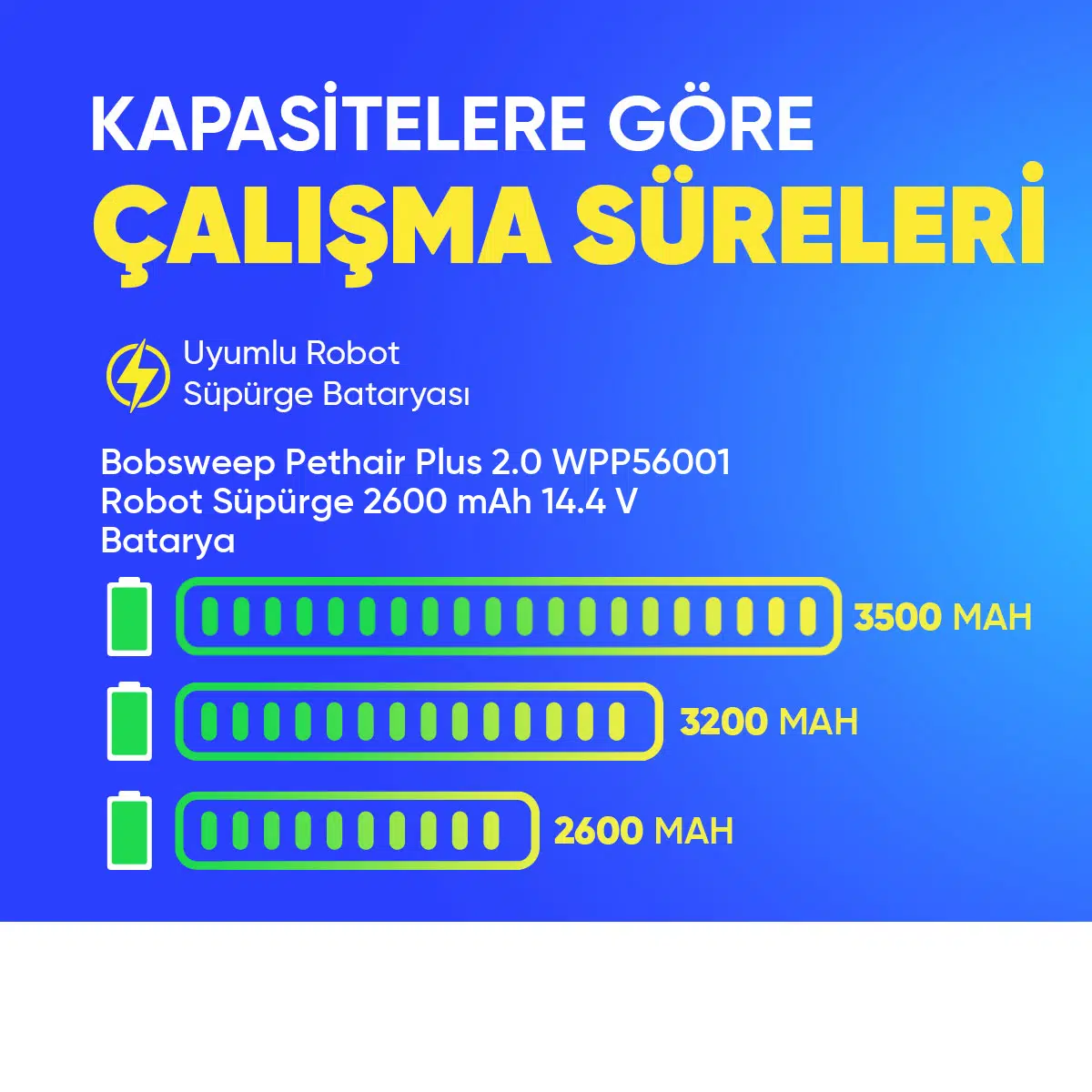 | Etiketler | Bobsweep Pethair Plus 2.0 WPP56001 Robot Süpürge 2600 mAh 14.4 V Batarya – Orjinal Uyumlu Uzun Ömürlü, Yüksek Performans Pil |