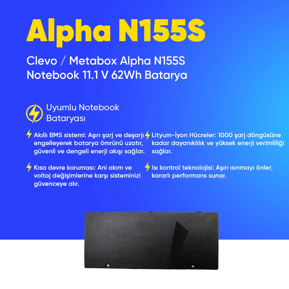 | Etiketler | Clevo / Metabox Alpha N155S Notebook 11.1 V 62Wh Batarya – Orjinal Uyumlu, Yüksek Performanslı |