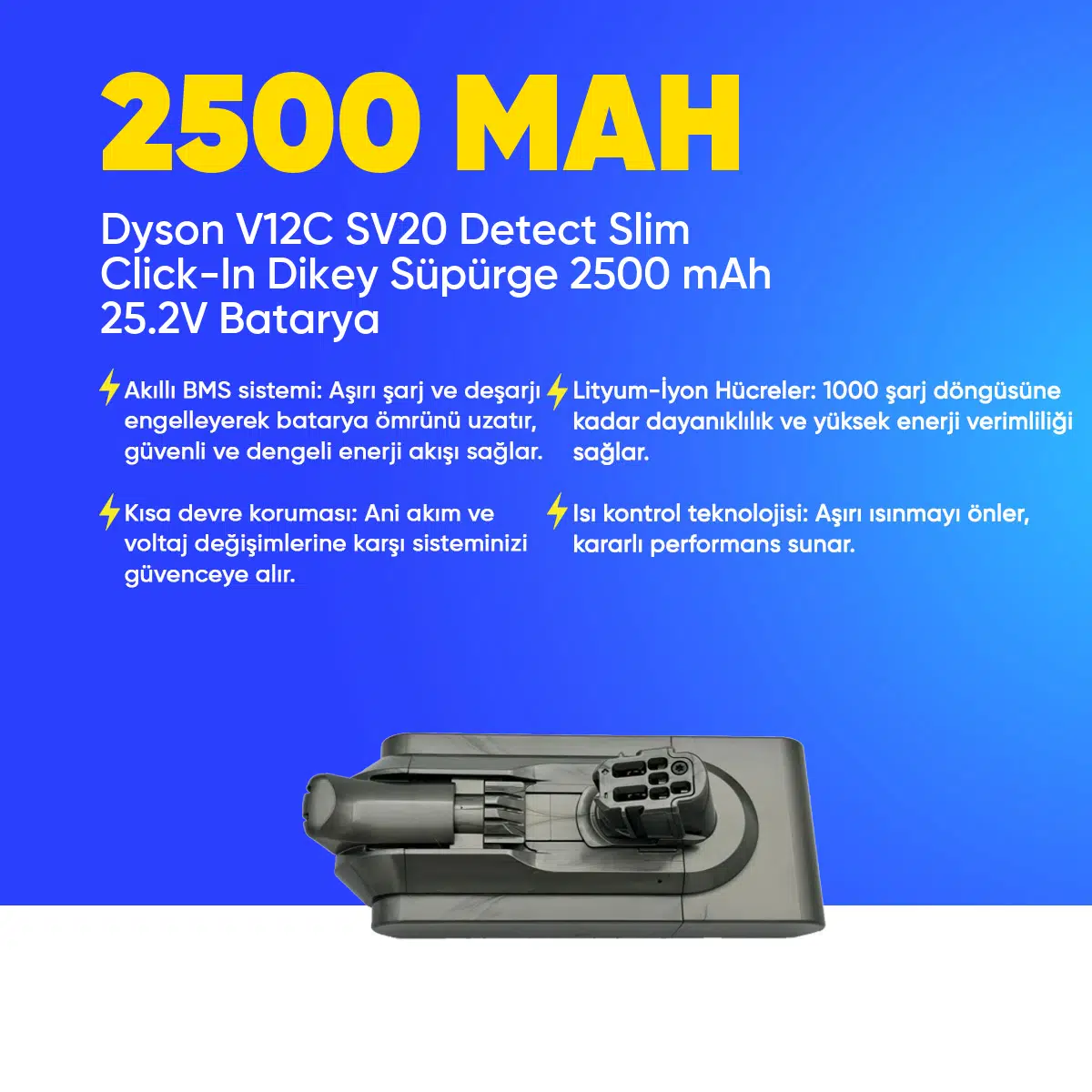 | Etiketler | Dyson V12C SV20 Detect Slim Click-In Dikey Süpürge 2500 mAh 25.2 V Batarya – Orjinal Uyumlu Uzun Ömürlü, Yüksek Performans Pil |