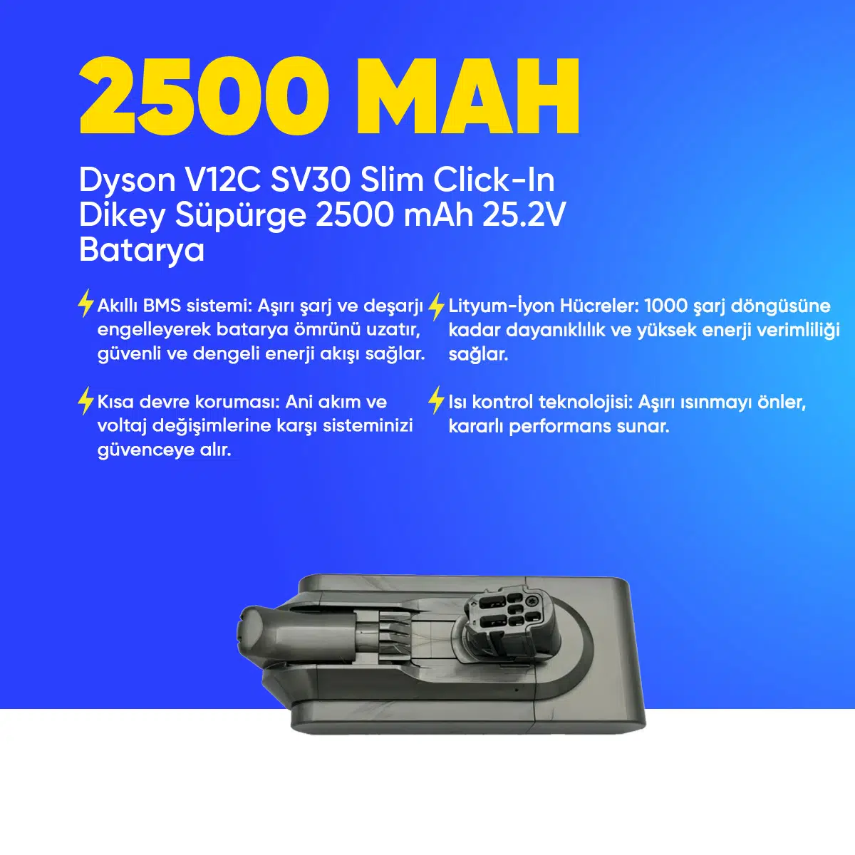 | Etiketler | Dyson V12C SV30 Slim Click-In Dikey Süpürge 2500 mAh 25.2 V Batarya – Orjinal Uyumlu Uzun Ömürlü, Yüksek Performans Pil |