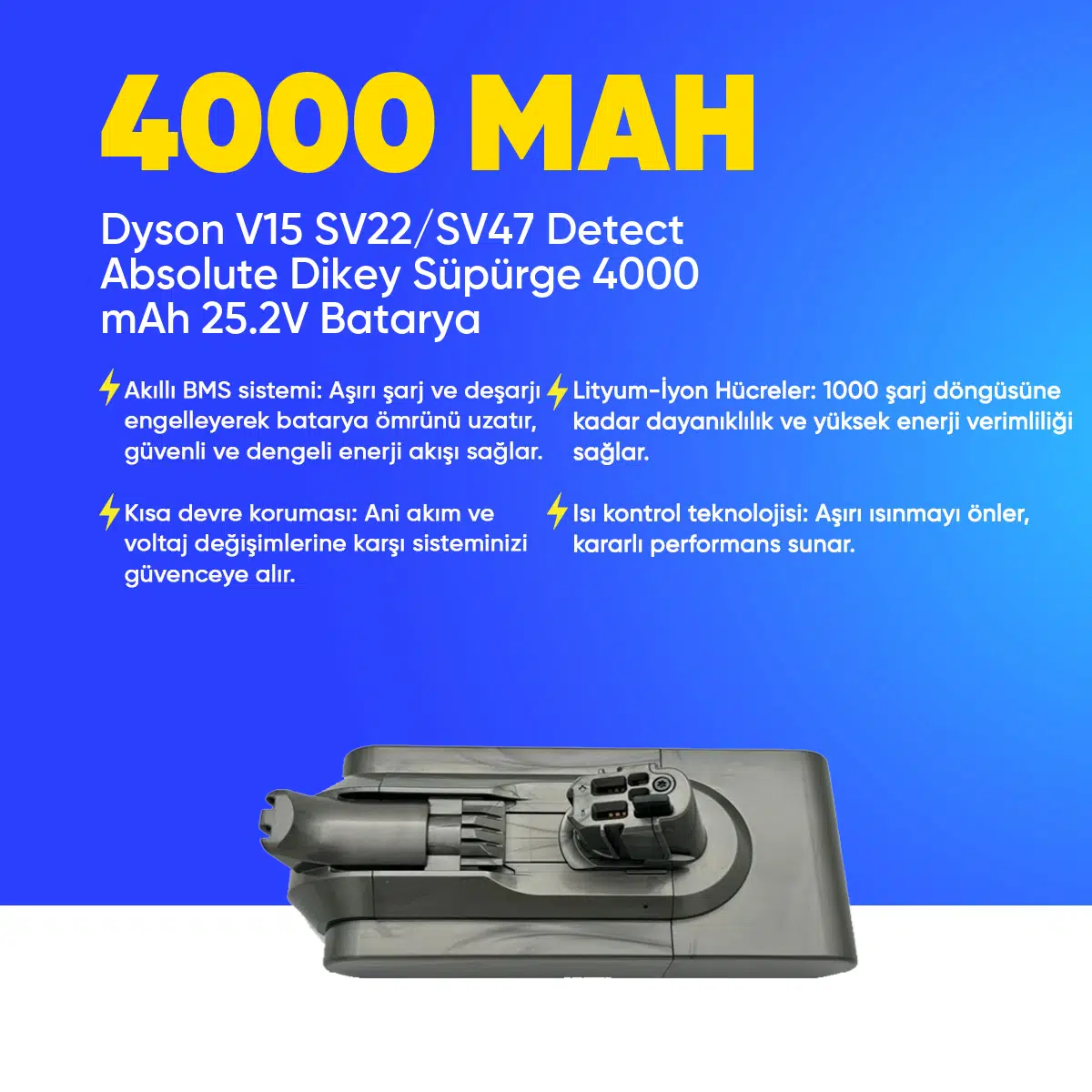 | Etiketler | Dyson V15 SV22/SV47 Detect Absolute Dikey Süpürge 4000 mAh 25.2 V Batarya – Orjinal Uyumlu Uzun Ömürlü, Yüksek Performans Pil |