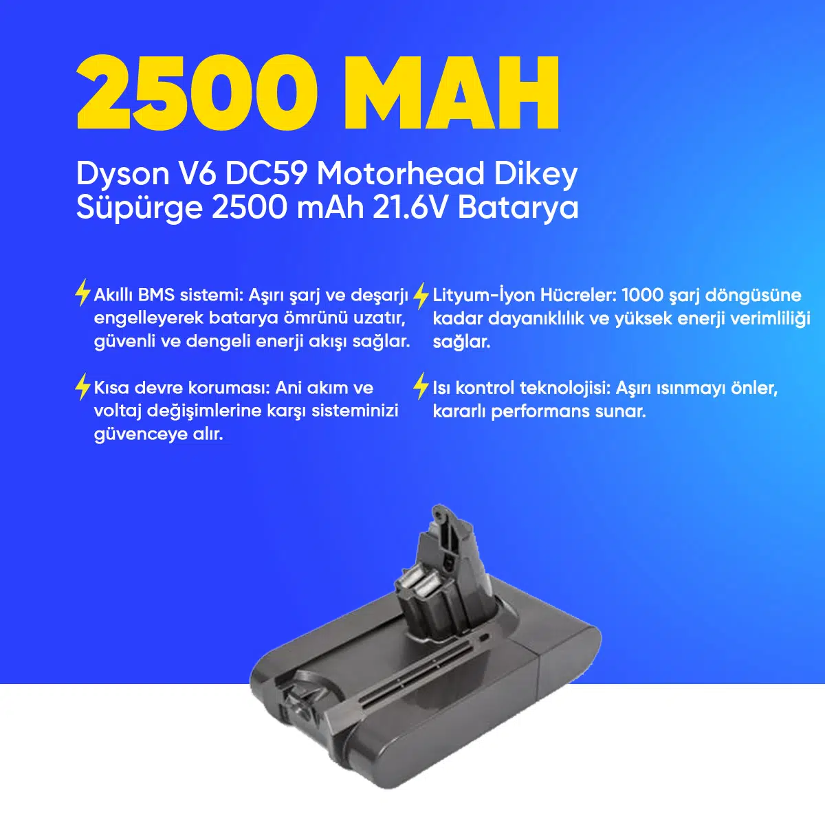| Etiketler | Dyson V6 DC59 Motorhead Dikey Süpürge 2500 mAh 21.6 V Batarya – Orjinal Uyumlu Uzun Ömürlü, Yüksek Performans Pil |