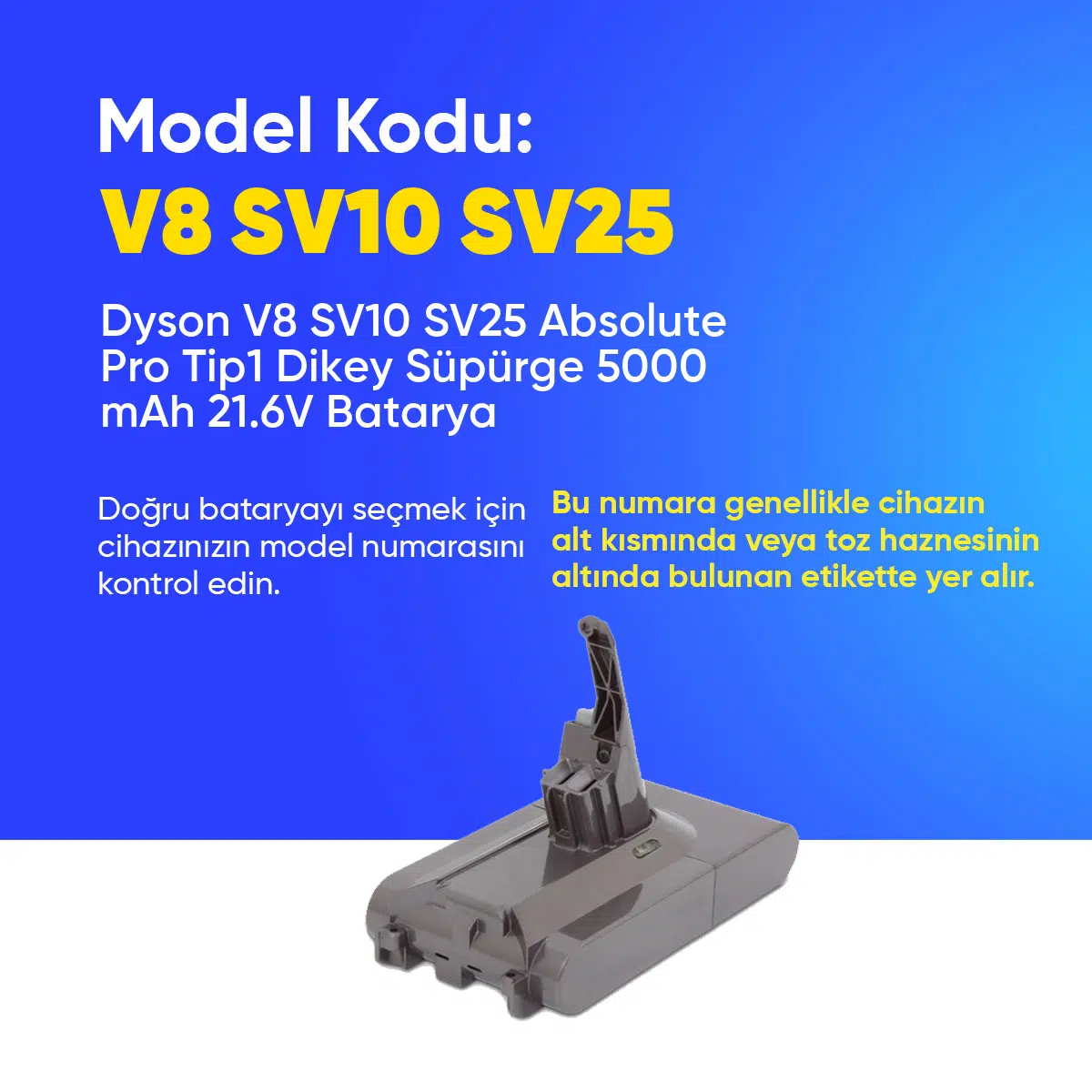 | Etiketler | Dyson V8 SV10 SV25 Absolute Pro Tip1 Dikey Süpürge 5000 mAh 21.6 V Batarya – Orjinal Uyumlu Uzun Ömürlü, Yüksek Performans Pil |