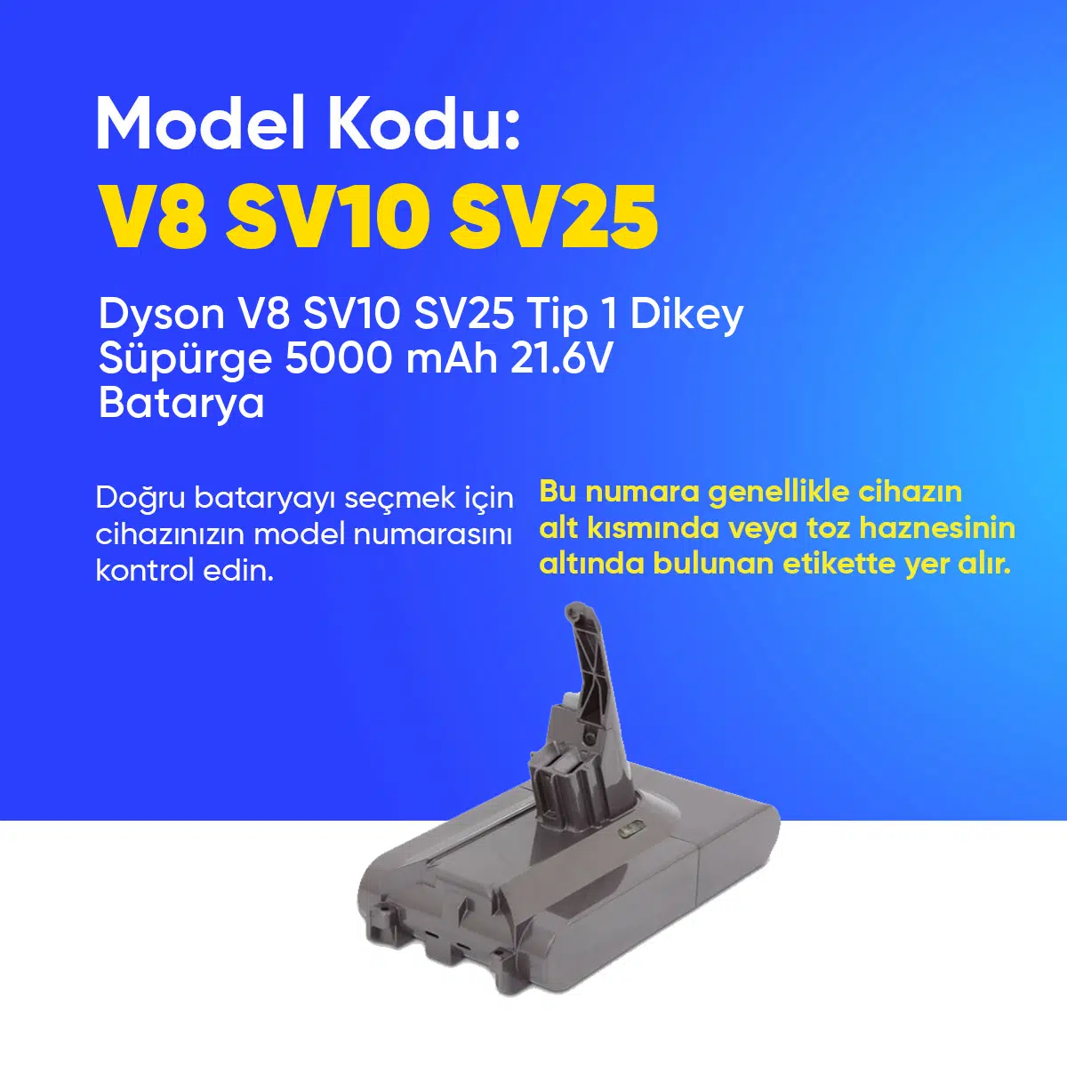 | Etiketler | Dyson V8 SV10 SV25 Tip 1 Dikey Süpürge 5000 mAh 21.6 V Batarya – Orjinal Uyumlu Uzun Ömürlü, Yüksek Performans Pil |