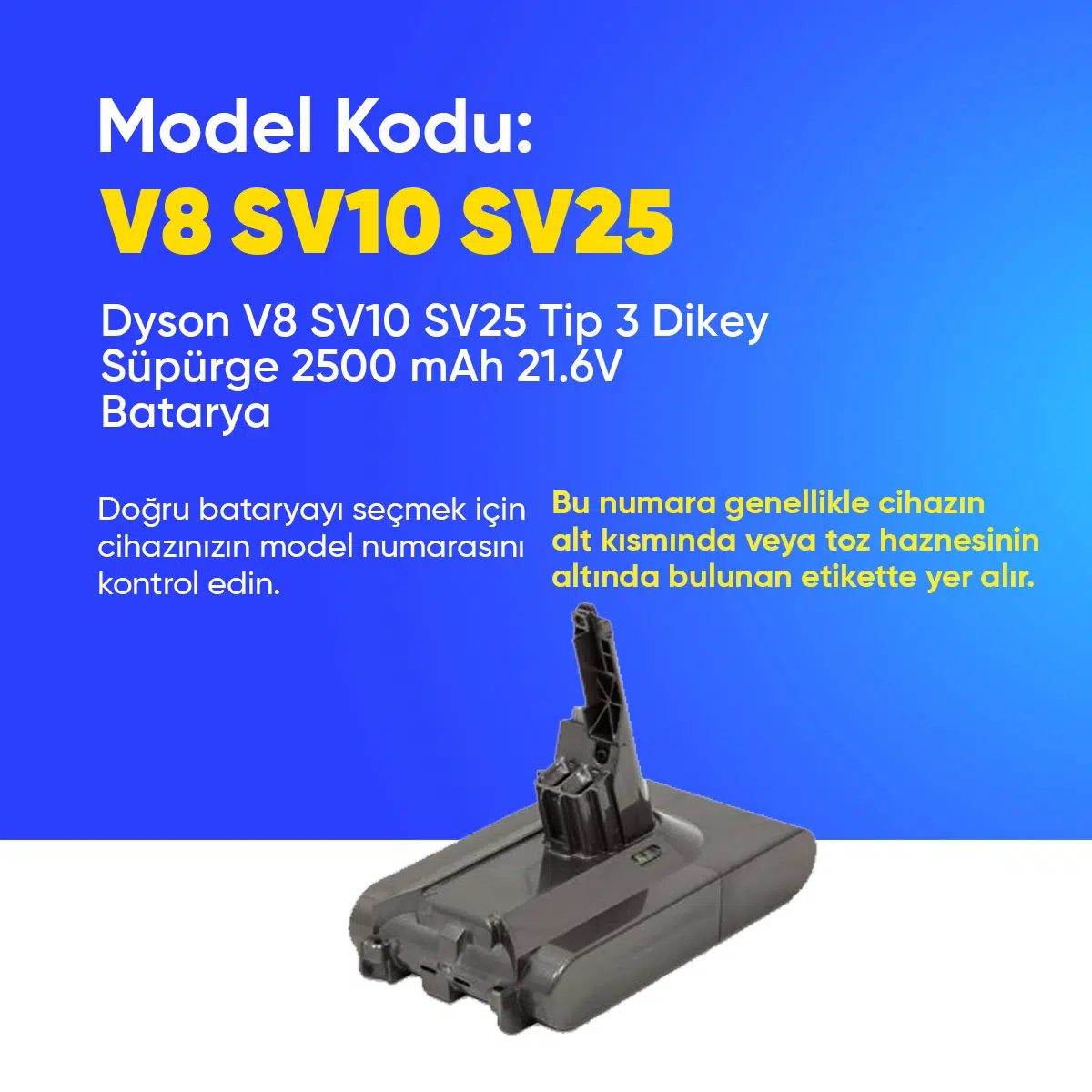 | Etiketler | Dyson V8 SV10 SV25 Tip 3 Dikey Süpürge 2500 mAh 21.6 V Batarya – Orjinal Uyumlu Uzun Ömürlü, Yüksek Performans Pil |