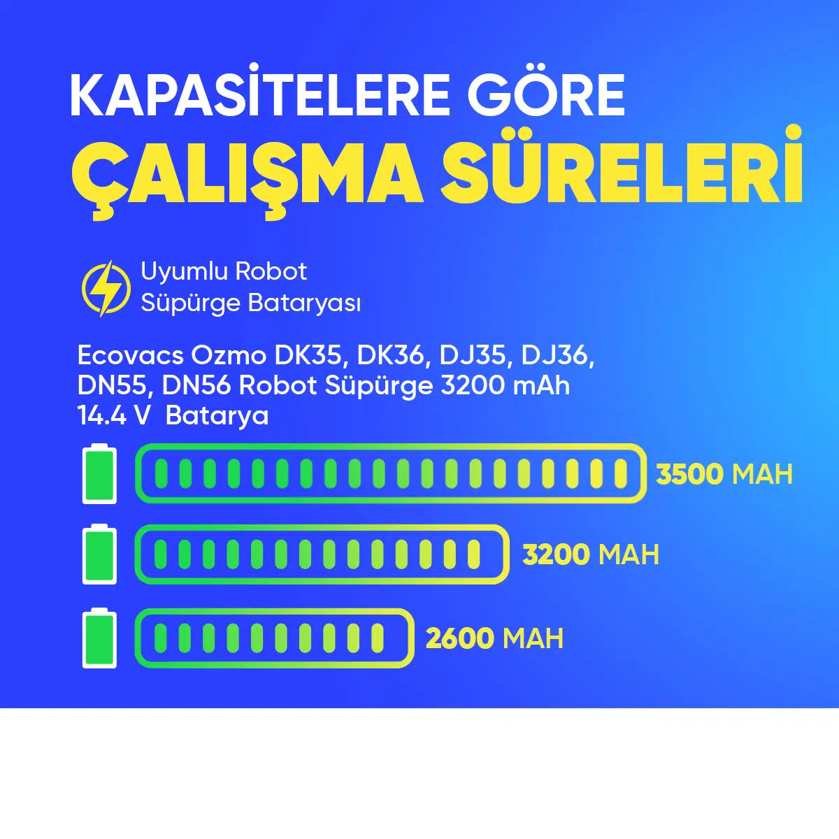 | Etiketler | Ecovacs Ozmo DK35, DK36, DJ35, DJ36, DN55, DN56 Robot Süpürge 3200 mAh 14.4 V Batarya – Orjinal Uyumlu Uzun Ömürlü, Yüksek Performans Pil |