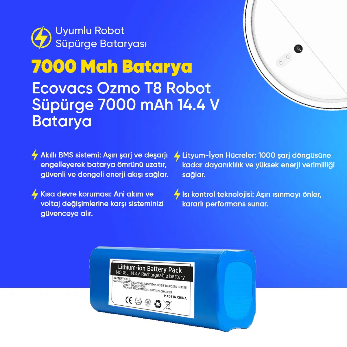 | Etiketler | Ecovacs Ozmo T8 Robot Süpürge 7000 mAh 14.4 V Batarya – Orjinal Uyumlu Uzun Ömürlü, Yüksek Performans Pil |