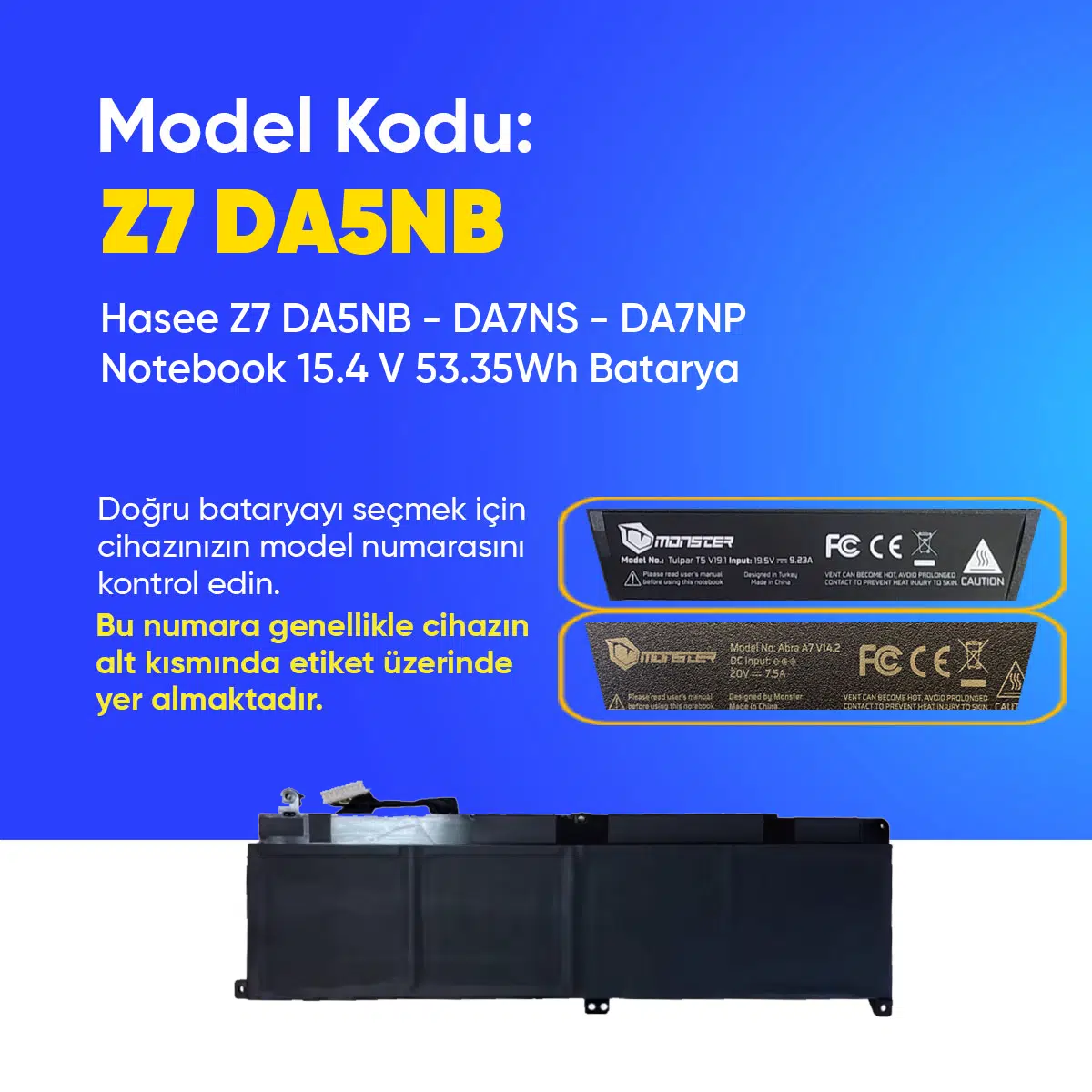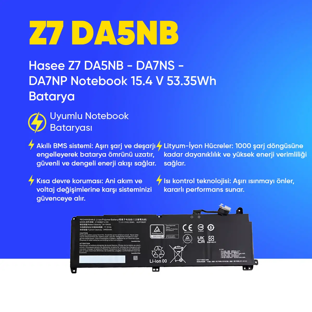 | Etiketler | Hasee Z7 DA5NB - DA7NS - DA7NP Notebook 15.4 V 53.35Wh Batarya – Orjinal Uyumlu, Yüksek Performanslı |