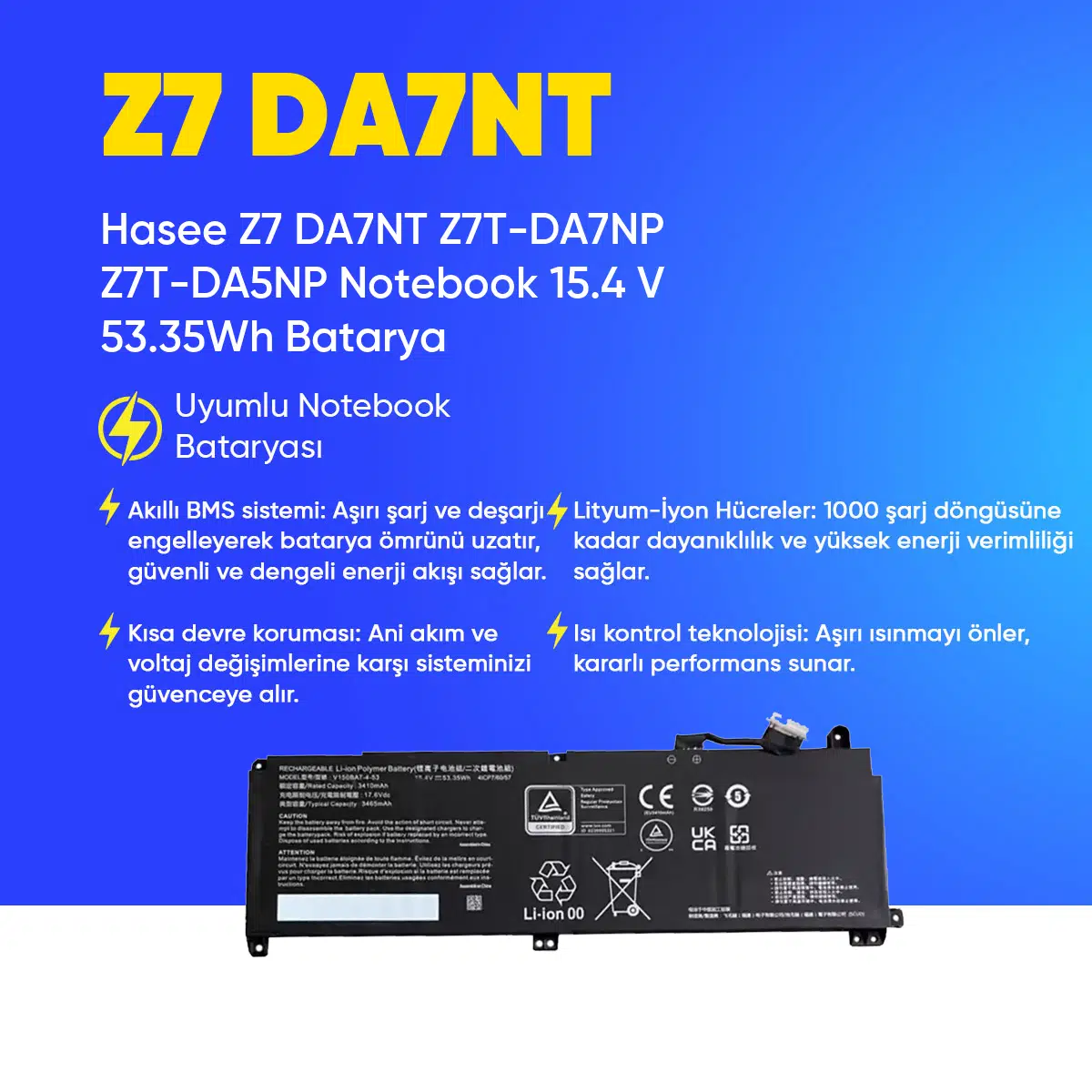 | Etiketler | Hasee Z7 DA7NT Z7T-DA7NP Z7T-DA5NP Notebook 15.4 V 53.35Wh Batarya – Orjinal Uyumlu, Yüksek Performanslı |