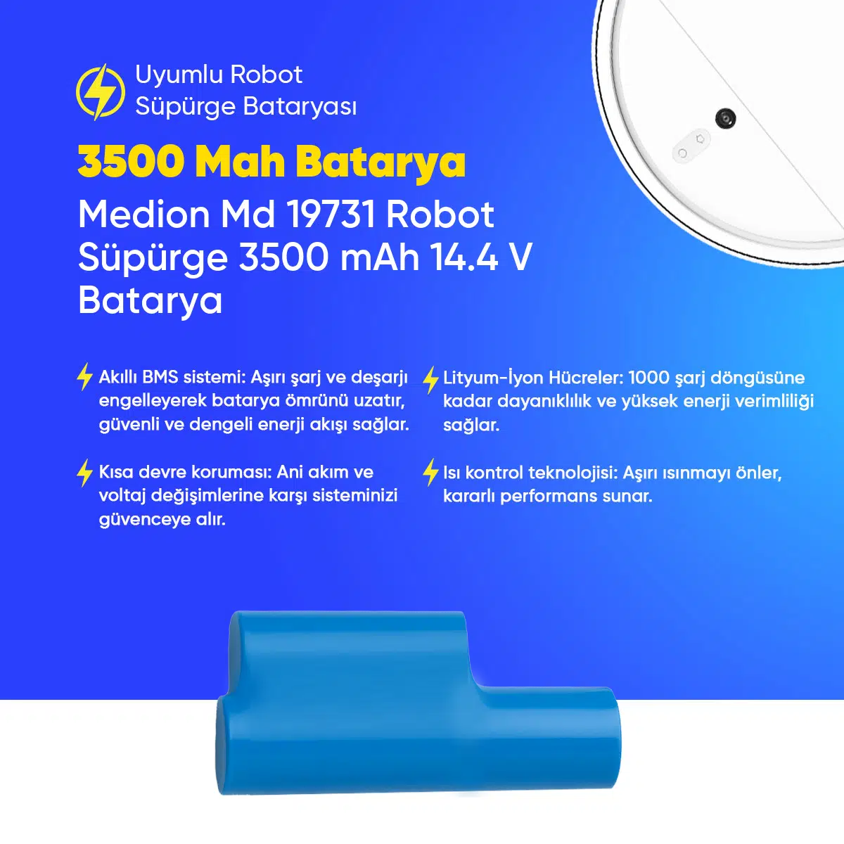 | Etiketler | Medion Md 19731 Robot Süpürge 3500 mAh 14.4 V Batarya – Orjinal Uyumlu Uzun Ömürlü, Yüksek Performans Pil |