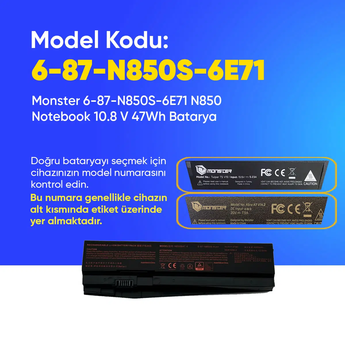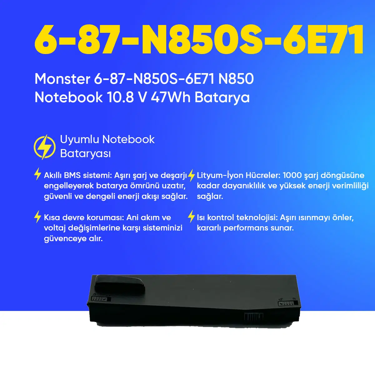 | Etiketler | Monster 6-87-N850S-6E71 N850 Notebook 10.8 V 47Wh Batarya – Orjinal Uyumlu, Yüksek Performanslı |