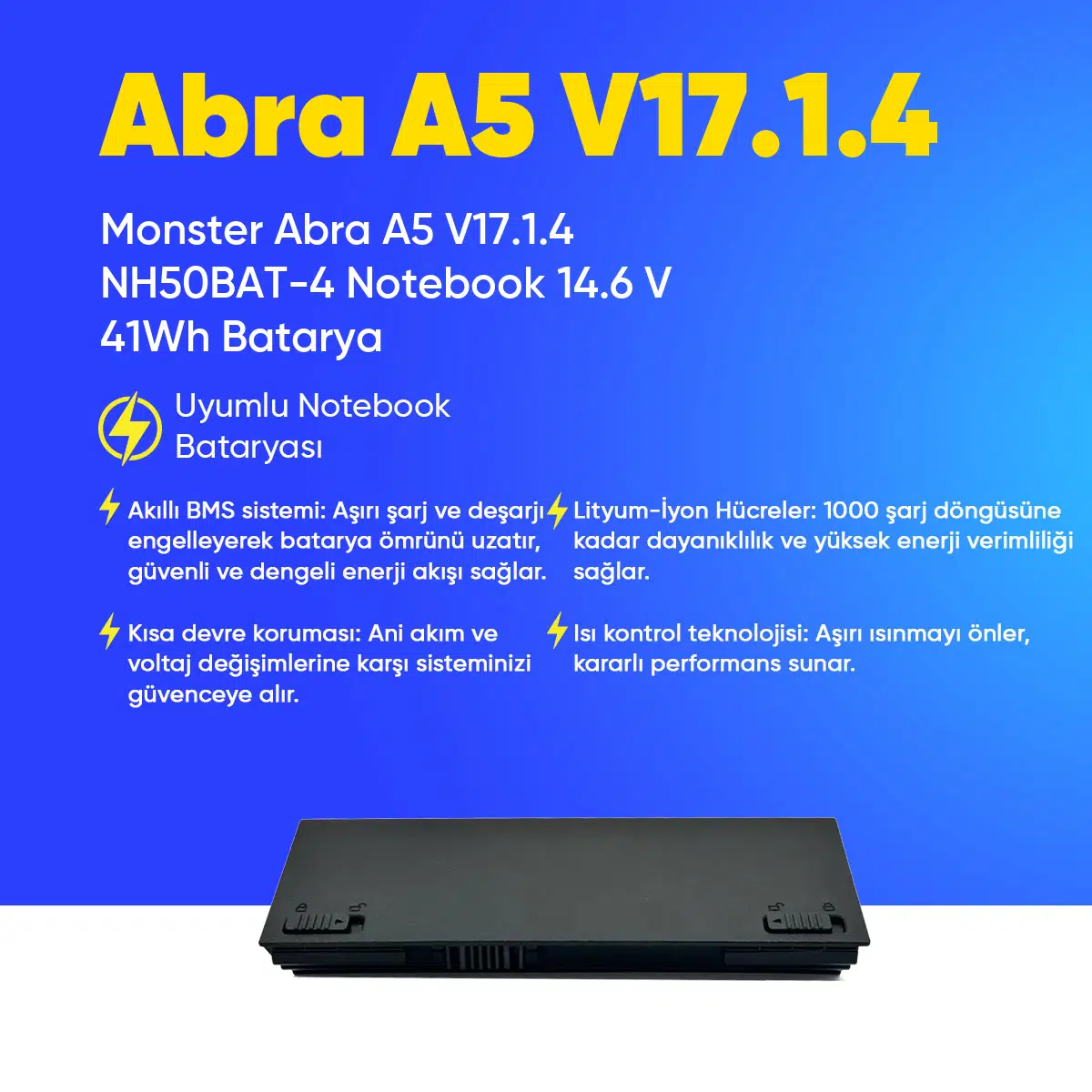 | Etiketler | Monster Abra A5 V17.1.4 NH50BAT-4 Notebook 14.6 V 41Wh Batarya – Orjinal Uyumlu, Yüksek Performanslı |