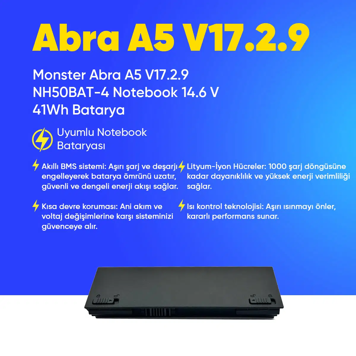 | Etiketler | Monster Abra A5 V17.2.9 NH50BAT-4 Notebook 14.6 V 41Wh Batarya – Orjinal Uyumlu, Yüksek Performanslı |