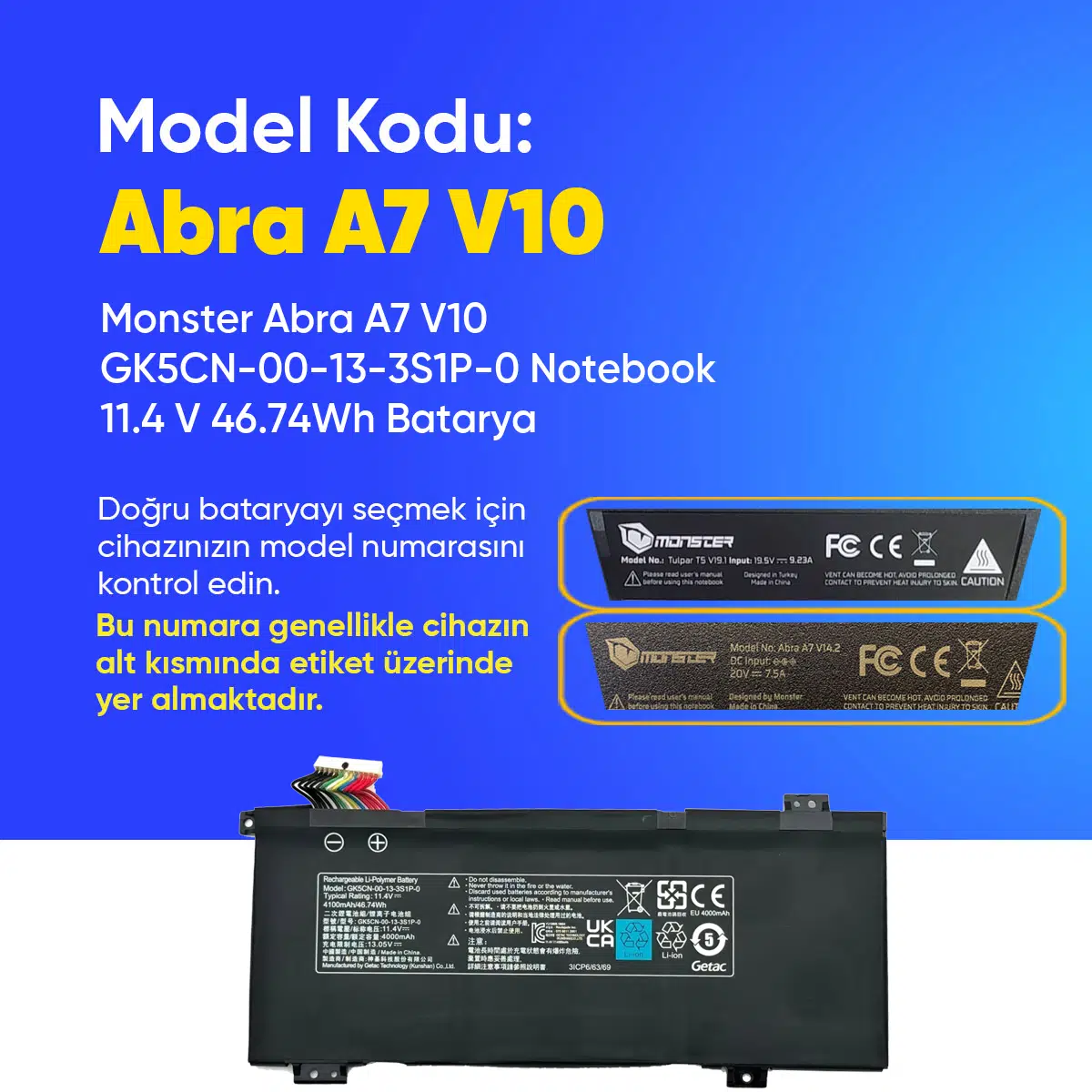 | Etiketler | Monster Abra A7 V10 GK5CN-00-13-3S1P-0 Notebook 11.4 V 46.74Wh Batarya – Orjinal Uyumlu, Yüksek Performanslı |