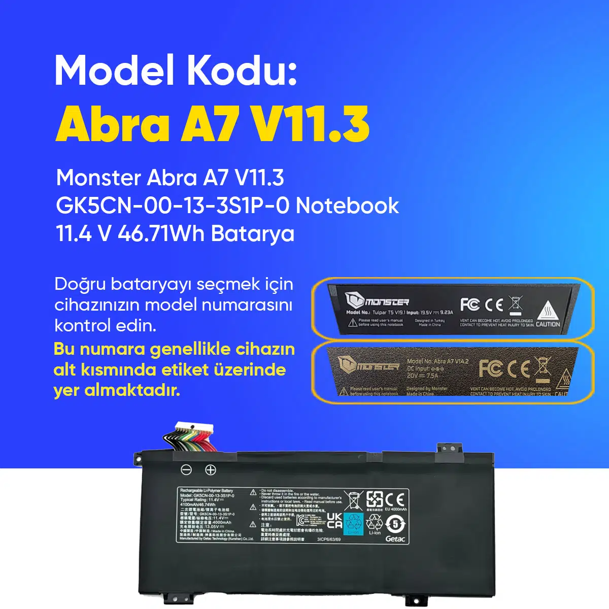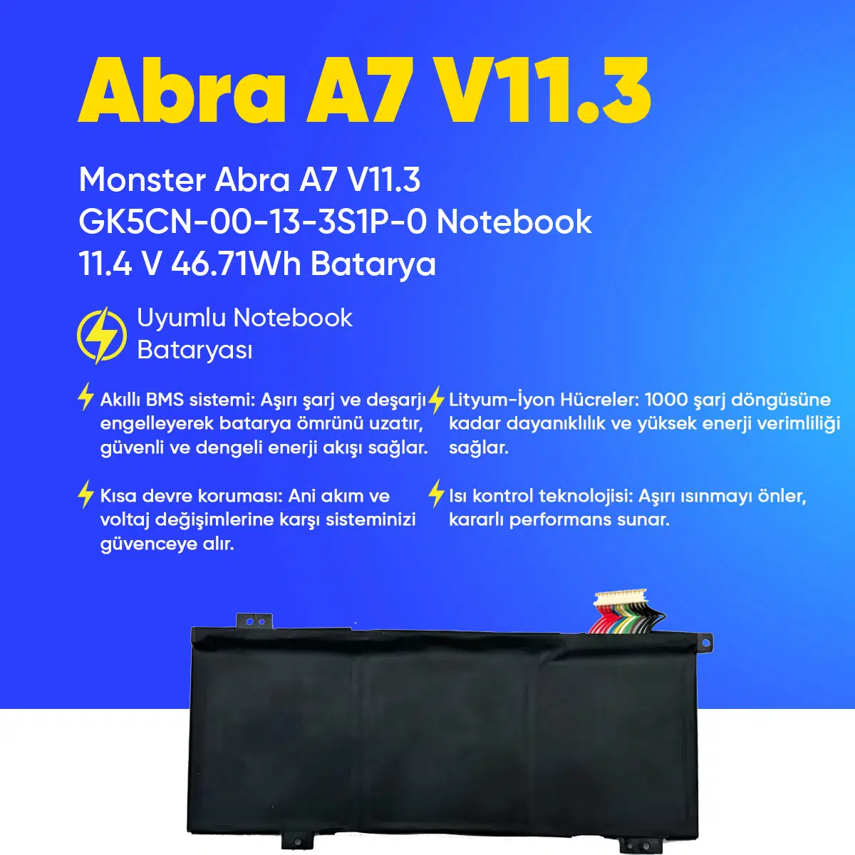 | Etiketler | Monster Abra A7 V11.3 GK5CN-00-13-3S1P-0 Notebook 11.4 V 46.71Wh Batarya – Orjinal Uyumlu, Yüksek Performanslı |