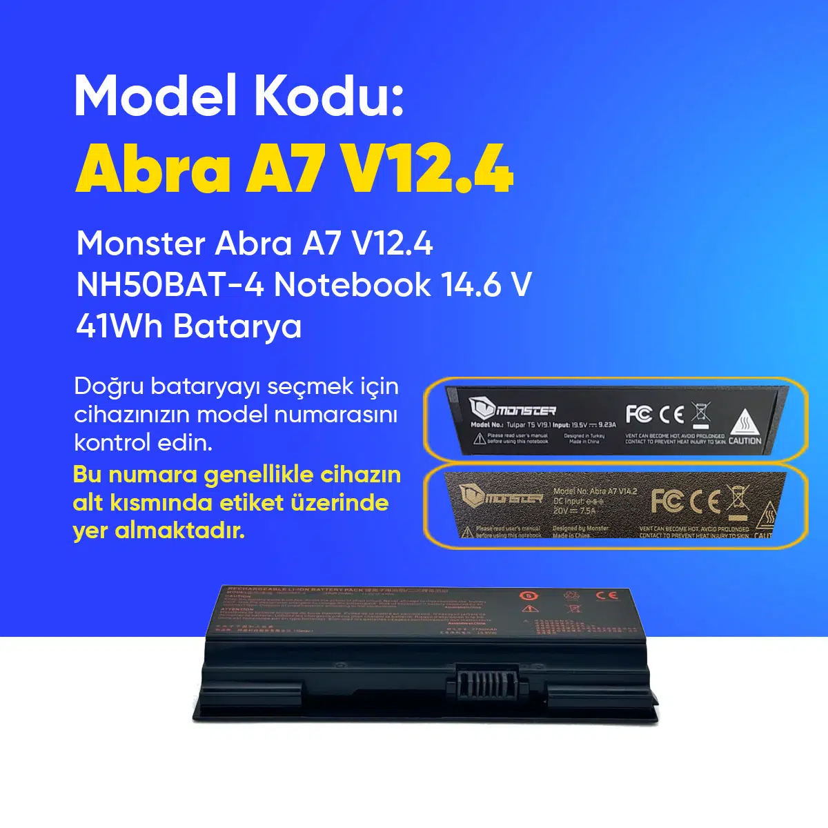 | Etiketler | Monster Abra A7 V12.4 NH50BAT-4 Notebook 14.6 V 41Wh Batarya – Orjinal Uyumlu, Yüksek Performanslı |