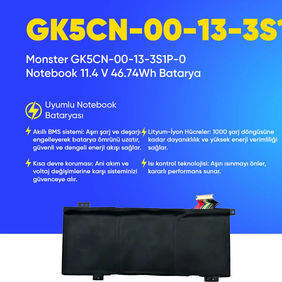 | Etiketler | Monster GK5CN-00-13-3S1P-0 Notebook 11.4 V 46.74Wh Batarya – Orjinal Uyumlu, Yüksek Performanslı |