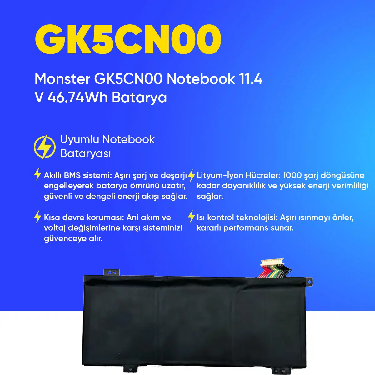 | Etiketler | Monster GK5CN00 Notebook 11.4 V 46.74Wh Batarya – Orjinal Uyumlu, Yüksek Performanslı |