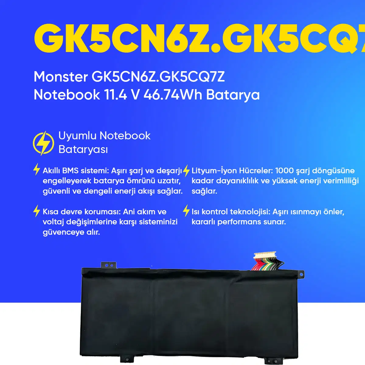 | Etiketler | Monster GK5CN6Z.GK5CQ7Z Notebook 11.4 V 46.74Wh Batarya – Orjinal Uyumlu, Yüksek Performanslı |