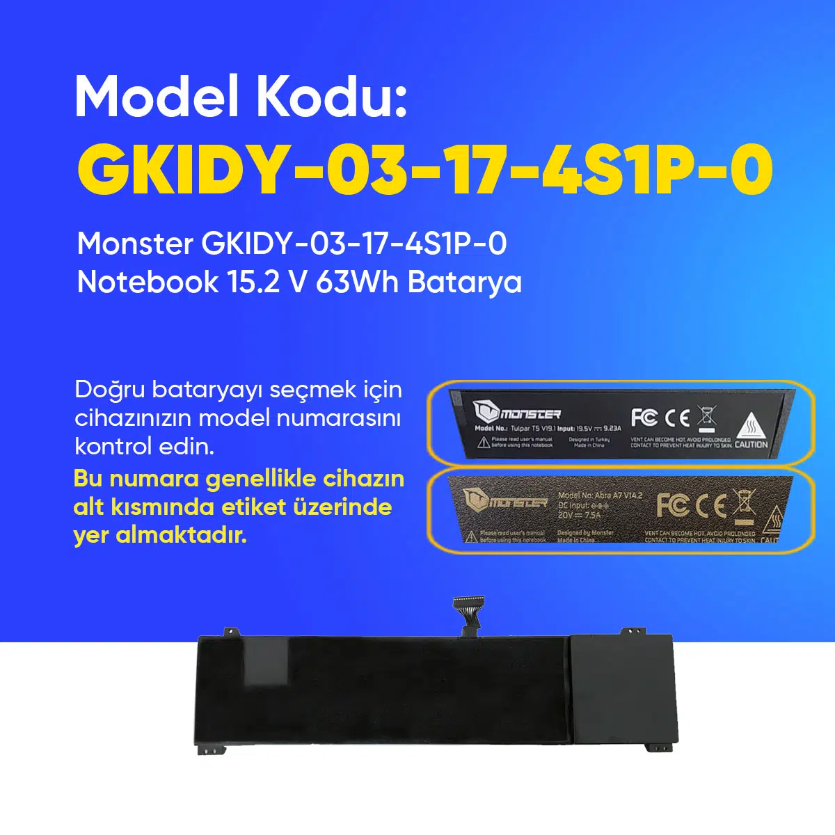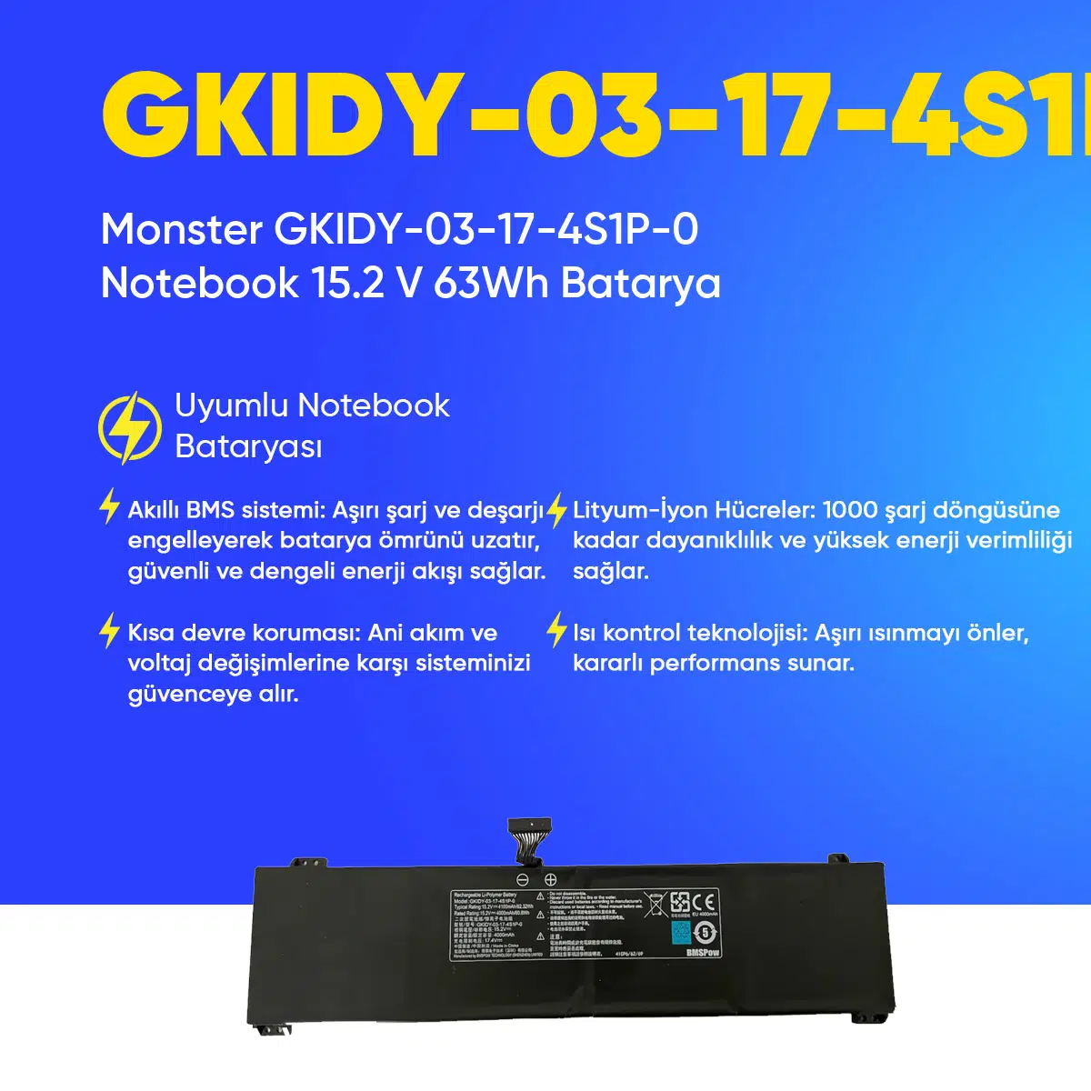 | Etiketler | Monster GKIDY-03-17-4S1P-0 Notebook 15.2 V 63Wh Batarya – Orjinal Uyumlu, Yüksek Performanslı |