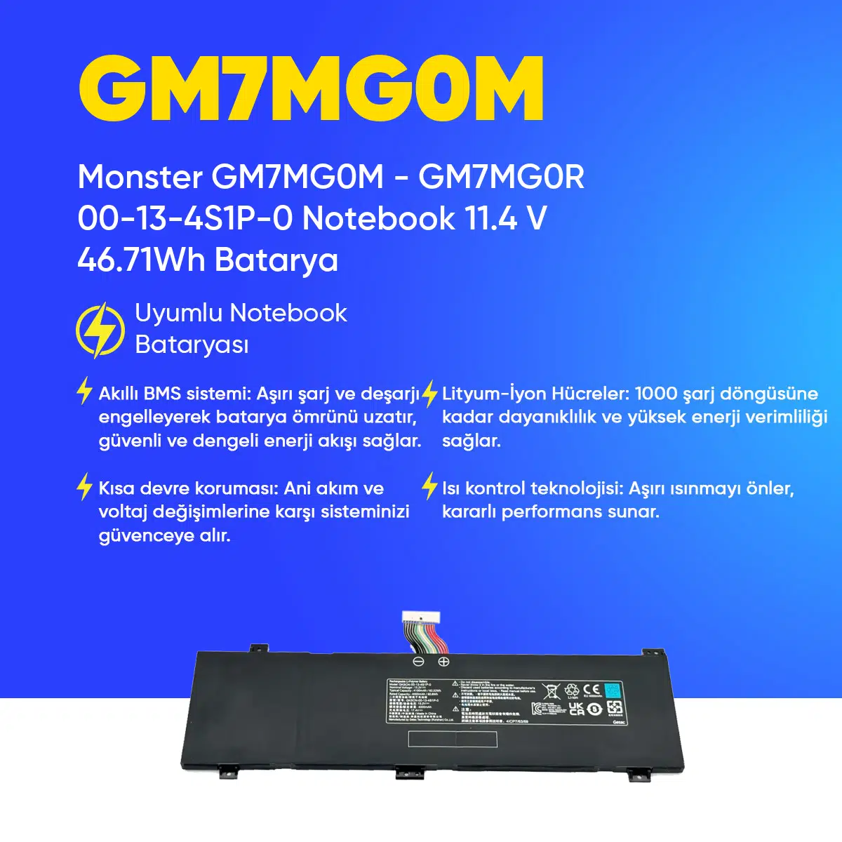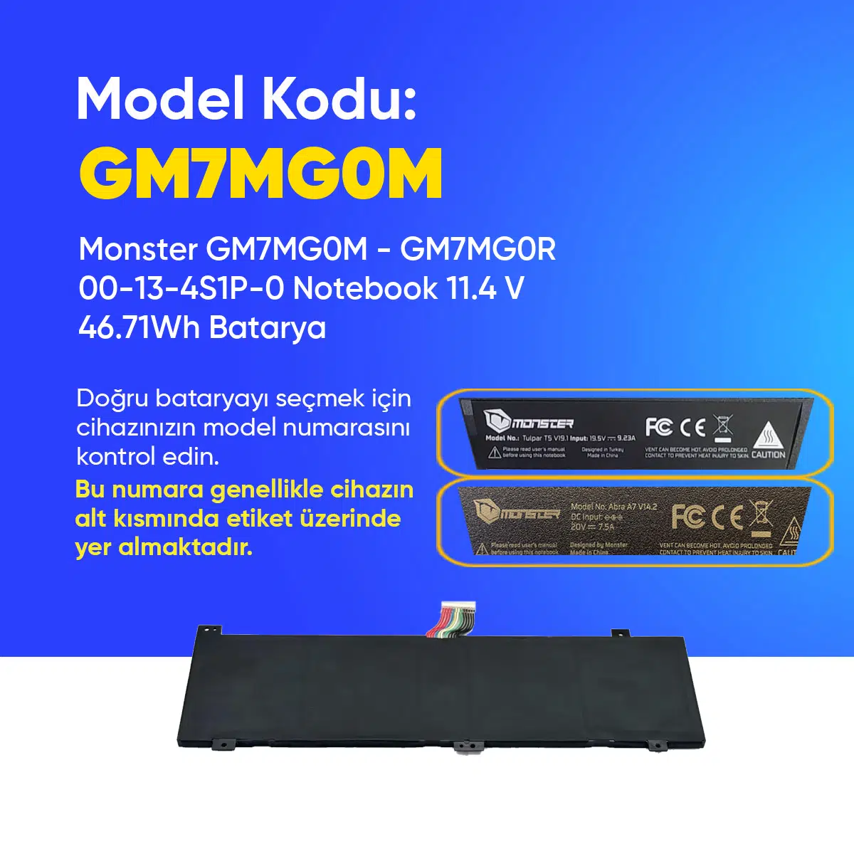 | Etiketler | Monster GM7MG0M - GM7MG0R 00-13-4S1P-0 Notebook 11.4 V 46.71Wh Batarya – Orjinal Uyumlu, Yüksek Performanslı |