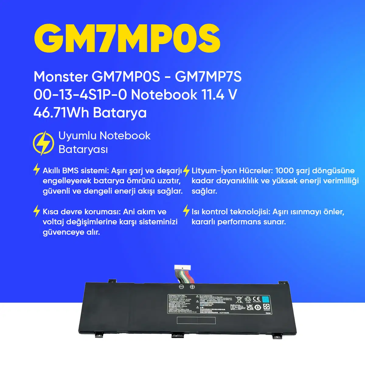 | Etiketler | Monster GM7MP0S - GM7MP7S 00-13-4S1P-0 Notebook 11.4 V 46.71Wh Batarya – Orjinal Uyumlu, Yüksek Performanslı |