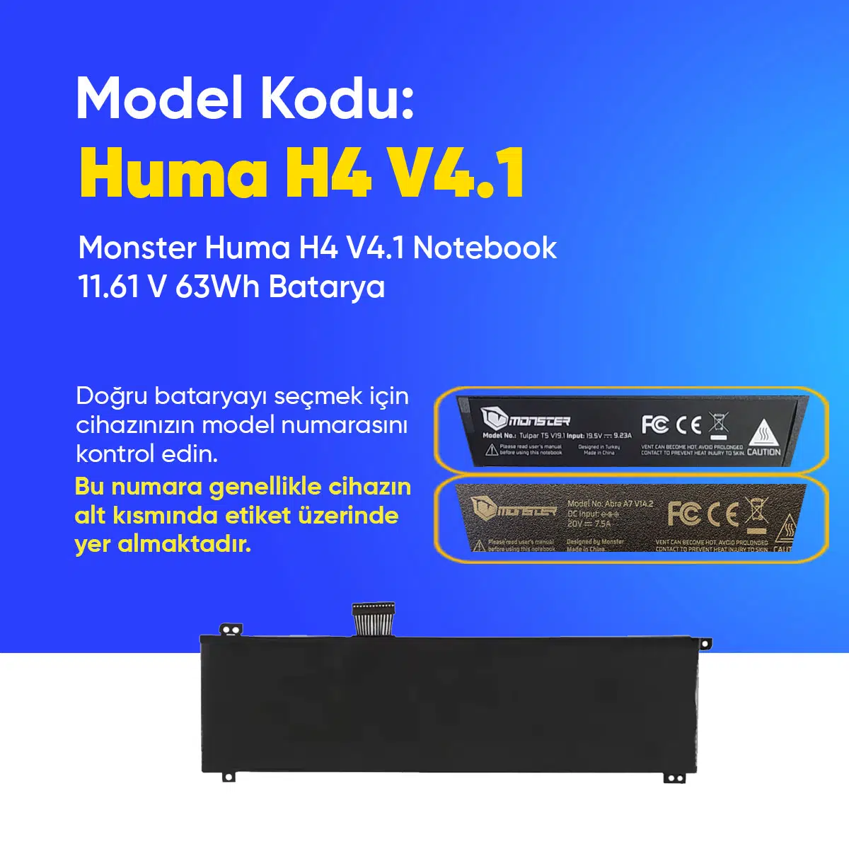 | Etiketler | Monster Huma H4 V4.1 Notebook 11.61 V 63Wh Batarya – Orijinal Uyumlu, Yüksek Performanslı |