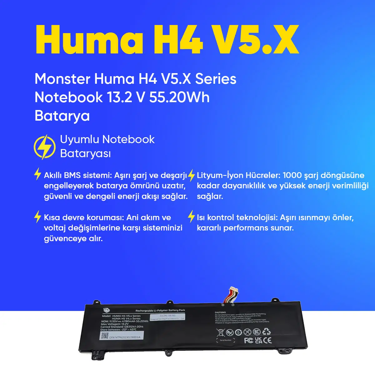 | Etiketler | Monster Huma H4 V5.X Series Notebook 13.2 V 55.20Wh Batarya – Orjinal Uyumlu, Yüksek Performanslı |