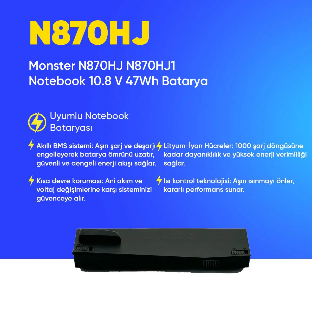 | Etiketler | Monster N870HJ N870HJ1 Notebook 10.8 V 47Wh Batarya – Orjinal Uyumlu, Yüksek Performanslı |