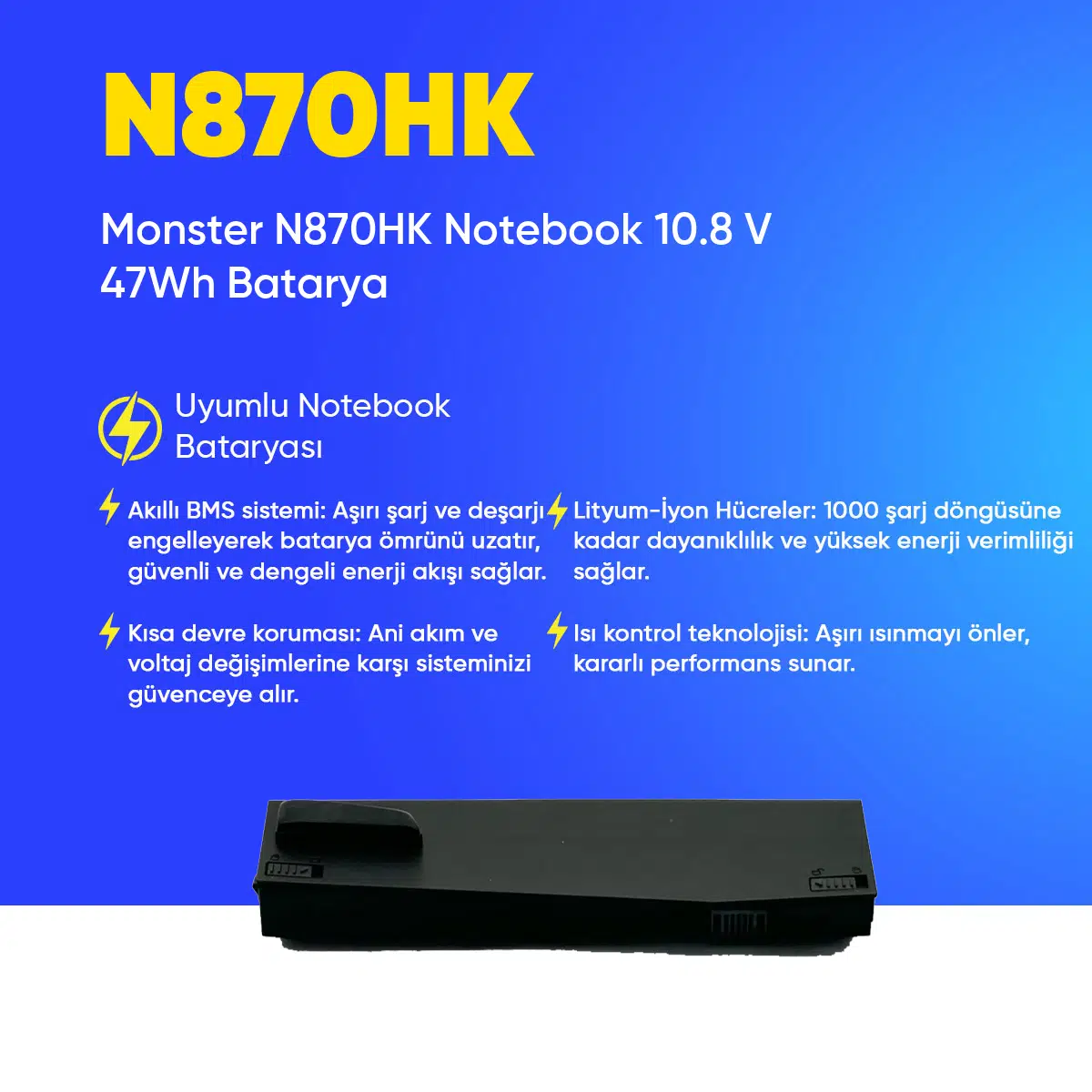 | Etiketler | Monster N870HK Notebook 10.8 V 47Wh Batarya – Orjinal Uyumlu, Yüksek Performanslı |