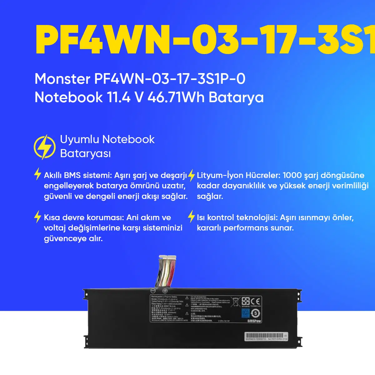 | Etiketler | Monster PF4WN-03-17-3S1P-0 Notebook 11.4 V 46.71Wh Batarya – Orjinal Uyumlu, Yüksek Performanslı |