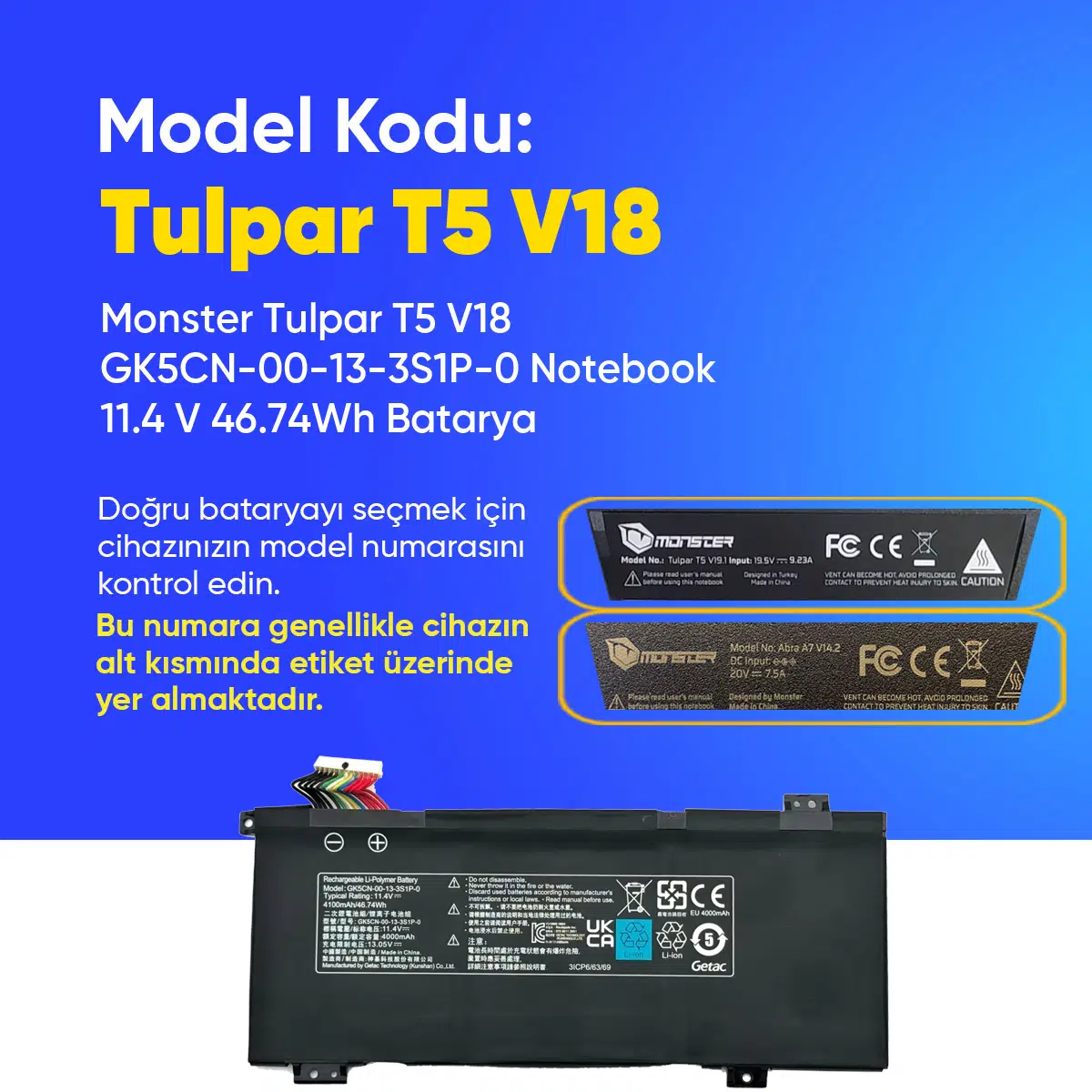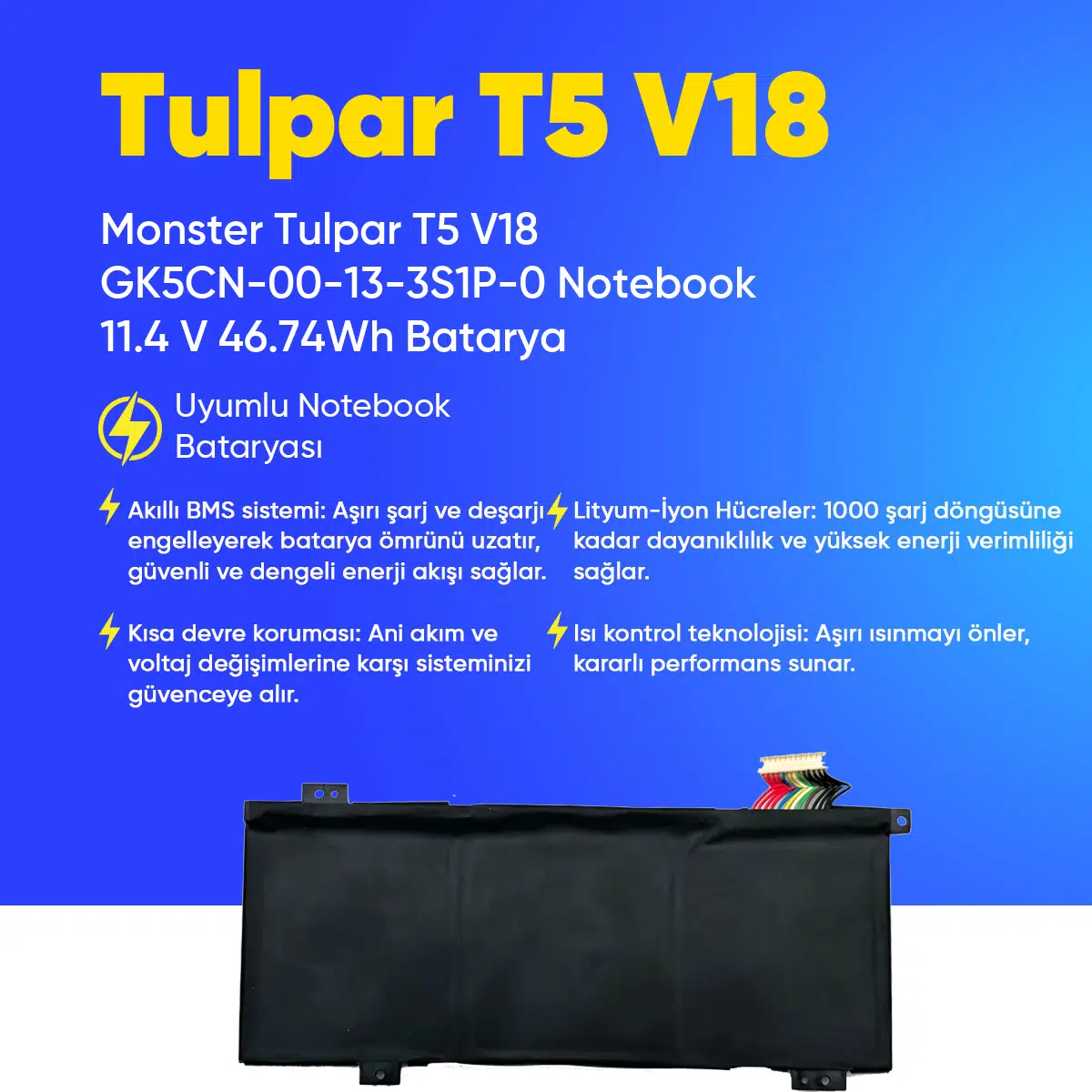 | Etiketler | Monster Tulpar T5 V18 GK5CN-00-13-3S1P-0 Notebook 11.4 V 46.74Wh Batarya – Orjinal Uyumlu, Yüksek Performanslı |