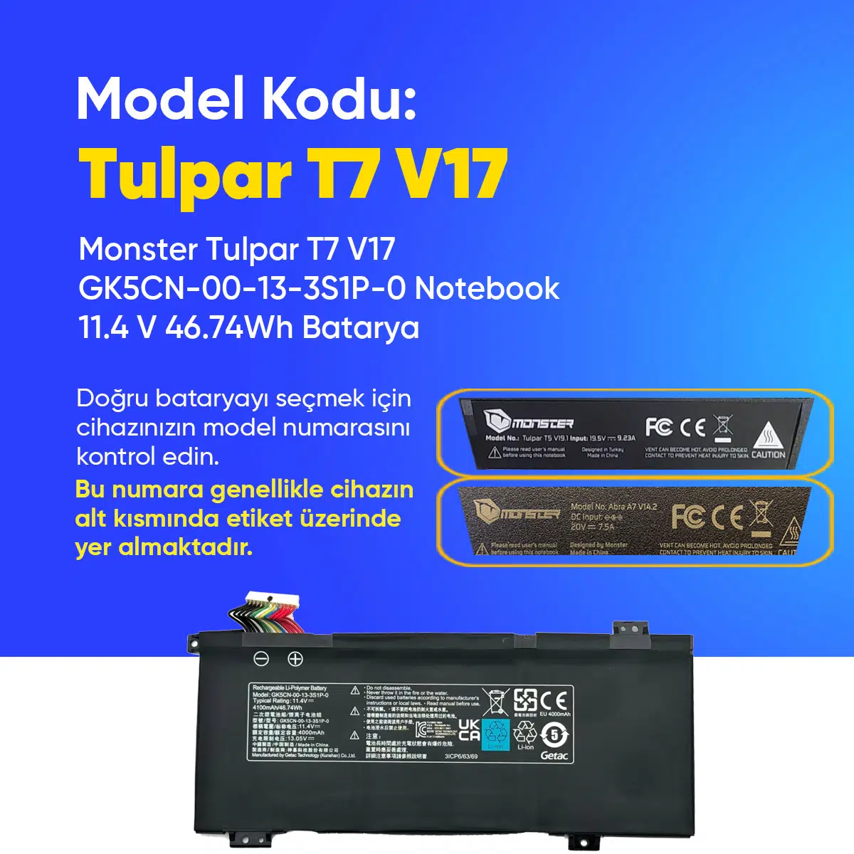 | Etiketler | Monster Tulpar T7 V17 GK5CN-00-13-3S1P-0 Notebook 11.4 V 46.74Wh Batarya – Orjinal Uyumlu, Yüksek Performanslı |
