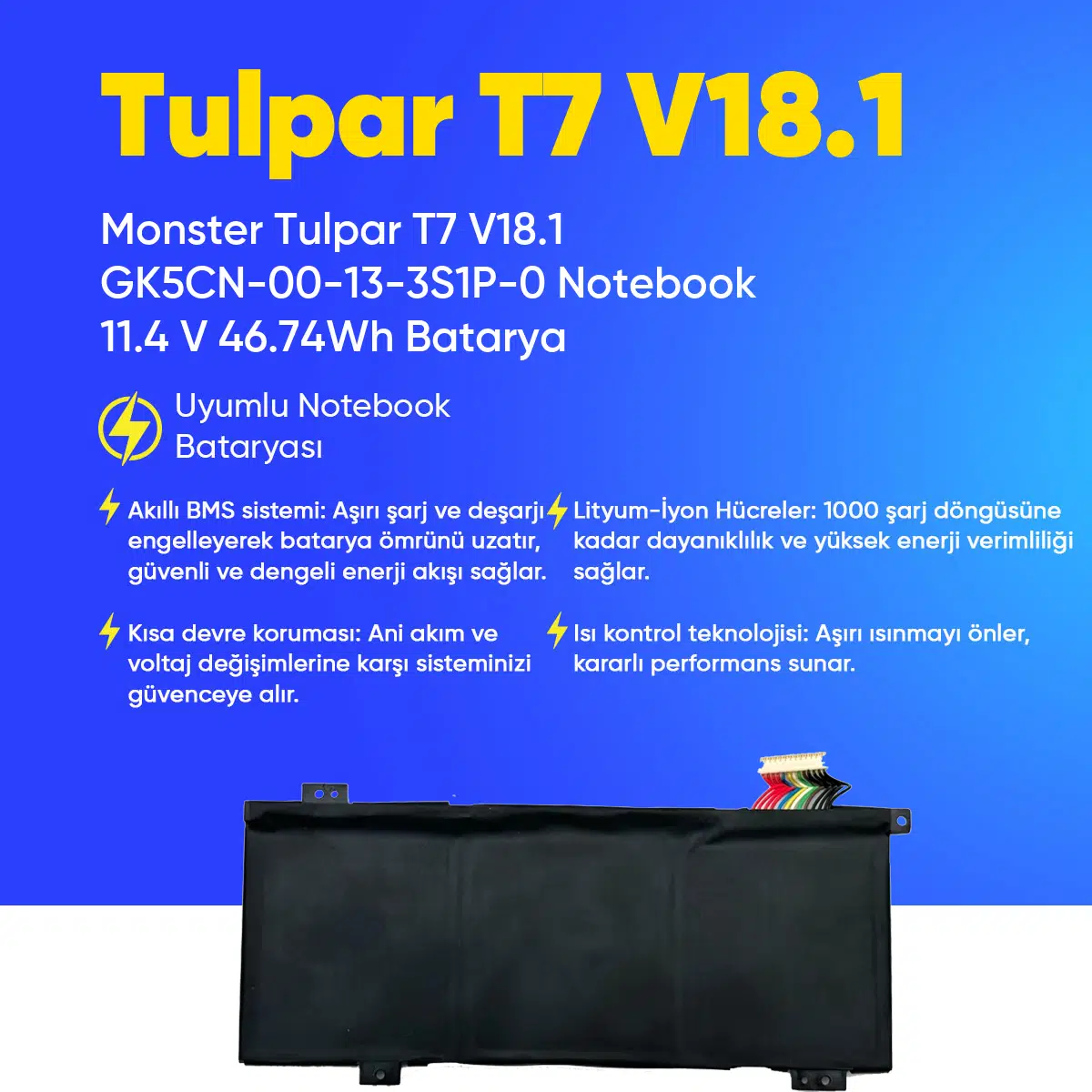 | Etiketler | Monster Tulpar T7 V18.1 GK5CN-00-13-3S1P-0 Notebook 11.4 V 46.74Wh Batarya – Orjinal Uyumlu, Yüksek Performanslı |