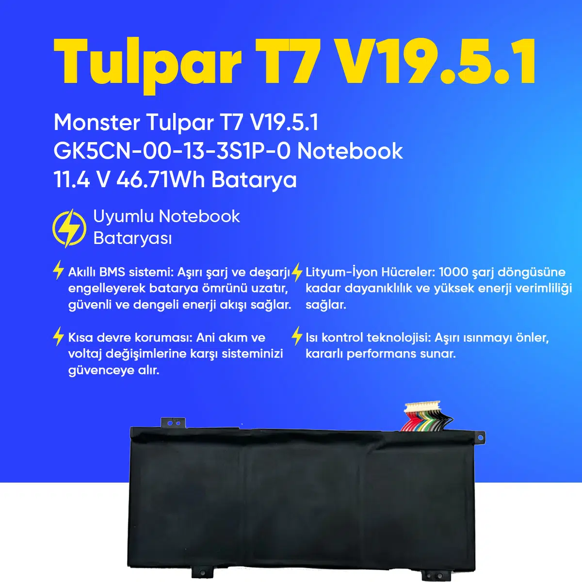 | Etiketler | Monster Tulpar T7 V19.5.1 GK5CN-00-13-3S1P-0 Notebook 11.4 V 46.71Wh Batarya – Orjinal Uyumlu, Yüksek Performanslı |