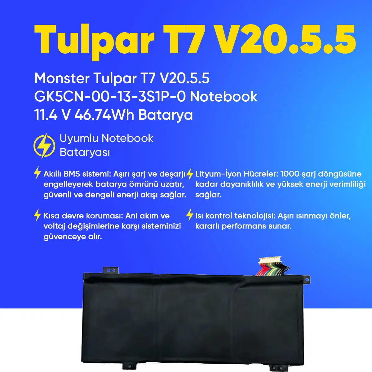 | Etiketler | Monster Tulpar T7 V20.5.5 GK5CN-00-13-3S1P-0 Notebook 11.4 V 46.74Wh Batarya – Orjinal Uyumlu, Yüksek Performanslı |
