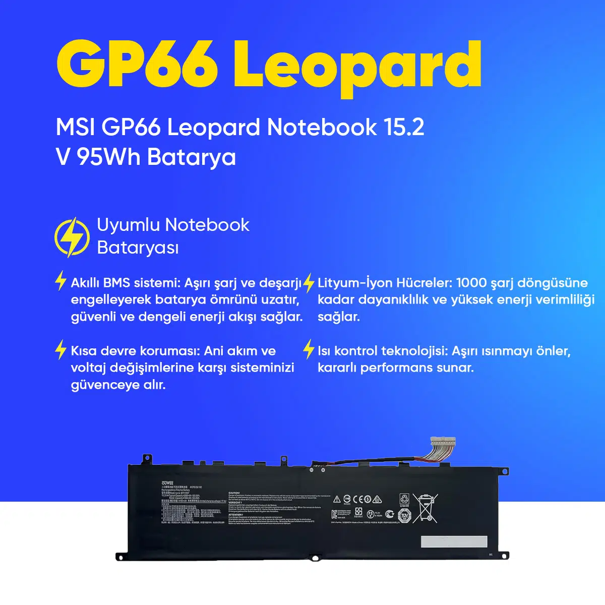 | Etiketler | MSI GP66 Leopard Notebook 15.2 V 95Wh Batarya – Orjinal Uyumlu, Yüksek Performanslı |