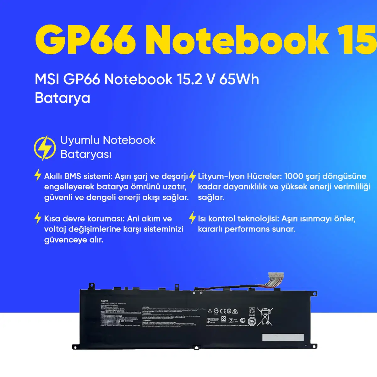 | Etiketler | MSI GP66 Notebook 15.2 V 65Wh Batarya – Orjinal Uyumlu, Yüksek Performanslı |