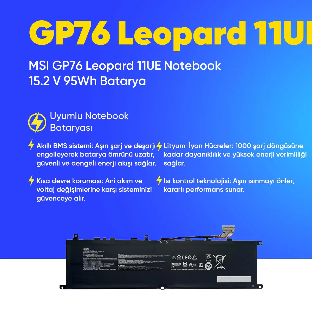 | Etiketler | MSI GP76 Leopard 11UE Notebook 15.2 V 95Wh Batarya – Orjinal Uyumlu, Yüksek Performanslı |