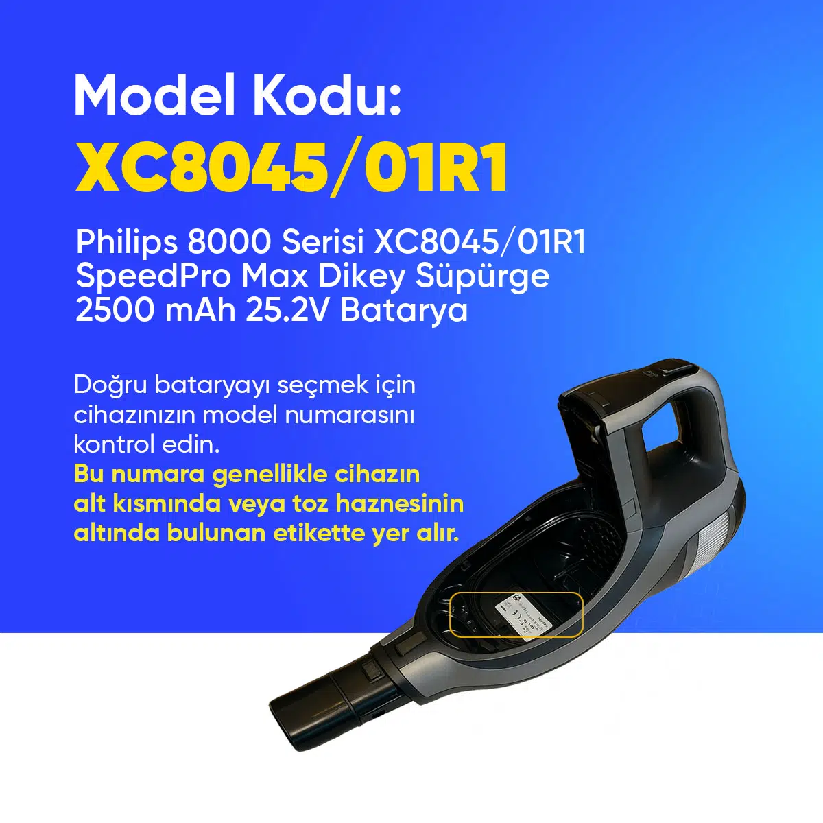 | Etiketler | Philips 8000 Serisi XC8045/01R1 SpeedPro Max Dikey Süpürge 2500 mAh 25.2 V Batarya – Orjinal Uyumlu Uzun Ömürlü, Yüksek Performans Pil |