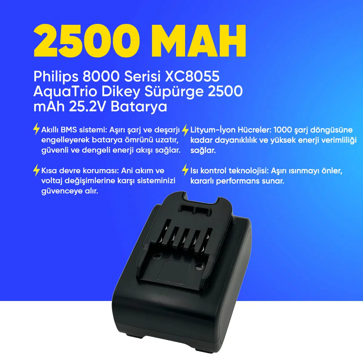 | Etiketler | Philips 8000 Serisi XC8055 AquaTrio Dikey Süpürge 2500 mAh 25.2 V Batarya – Orjinal Uyumlu Uzun Ömürlü, Yüksek Performans Pil |