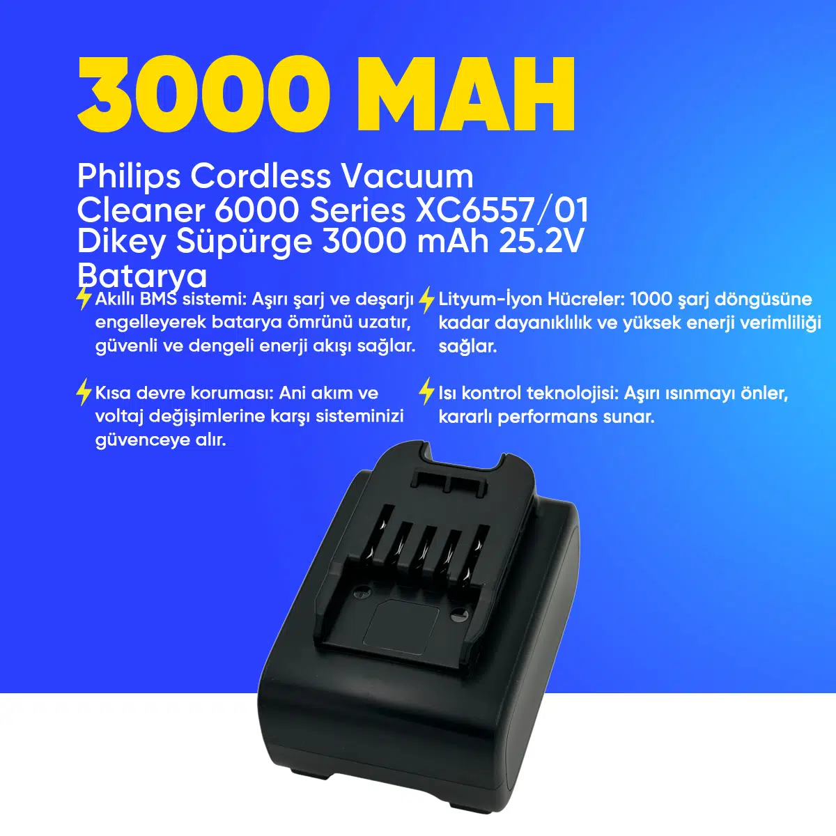 | Etiketler | Philips Cordless Vacuum Cleaner 6000 Series XC6557/01 Dikey Süpürge 3000 mAh 25.2 V Batarya – Orjinal Uyumlu Uzun Ömürlü, Yüksek Performans Pil |