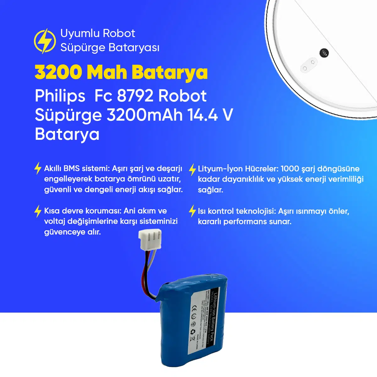 | Etiketler | Philips Fc 8792 Robot Süpürge 3200mAh 14.4 V Batarya – Orjinal Uyumlu Uzun Ömürlü, Yüksek Performans Pil |