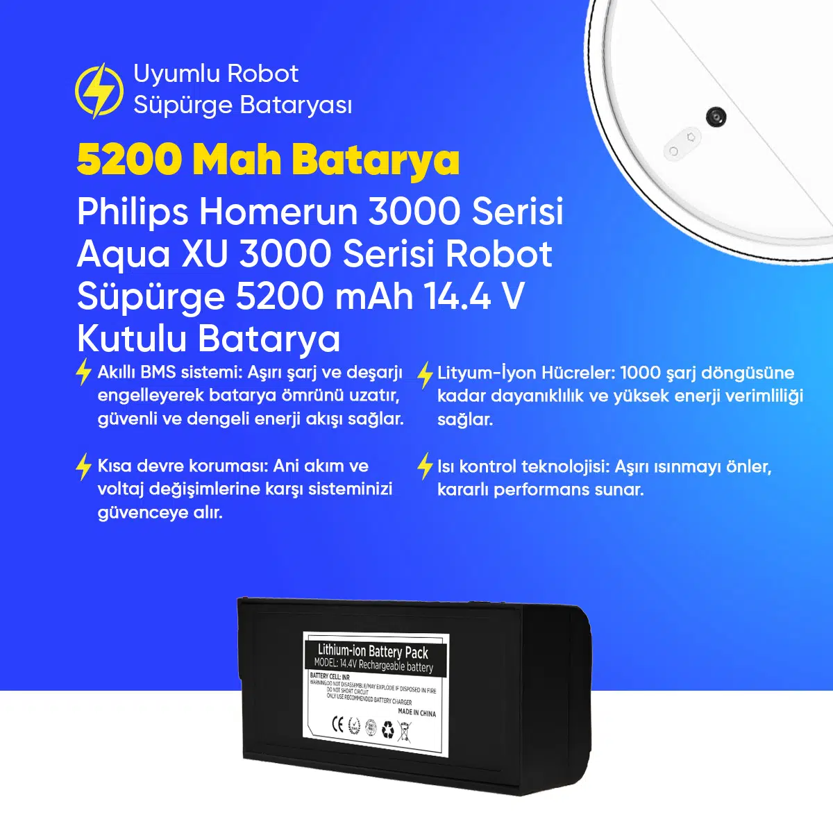 | Etiketler | Philips Homerun 3000 Serisi Aqua XU 3000 Serisi Robot Süpürge 5200 mAh 14.4 V Kutulu Batarya – Orjinal Uyumlu Uzun Ömürlü, Yüksek Performans Pil |