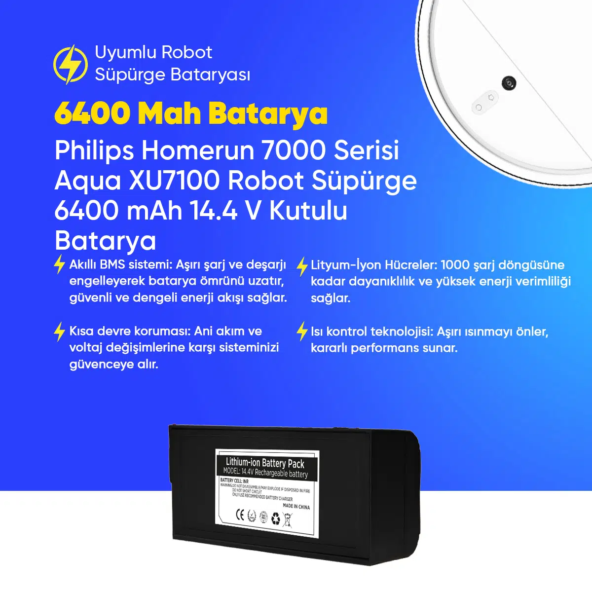 | Etiketler | Philips Homerun 7000 Serisi Aqua XU7100 Robot Süpürge 6400 mAh 14.4 V Kutulu Batarya – Orjinal Uyumlu Uzun Ömürlü, Yüksek Performans Pil |