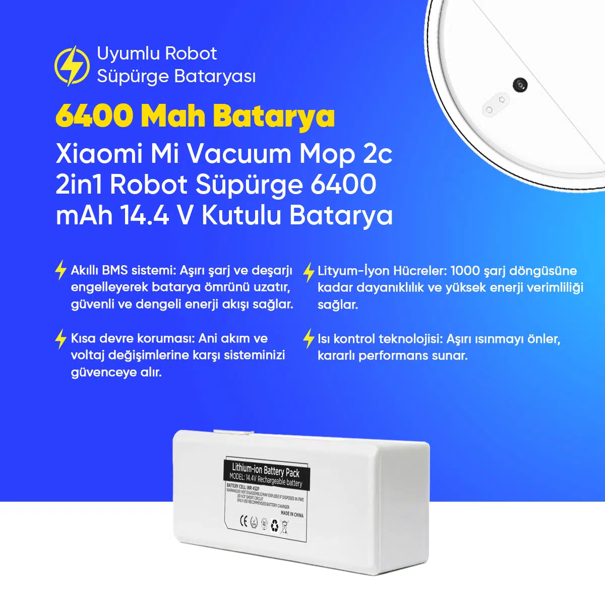 | Etiketler | Xiaomi Mi Vacuum Mop 2c 2in1 Robot Süpürge 6400 mAh 14.4 V Kutulu Batarya – Orjinal Uyumlu Uzun Ömürlü, Yüksek Performans Pil |