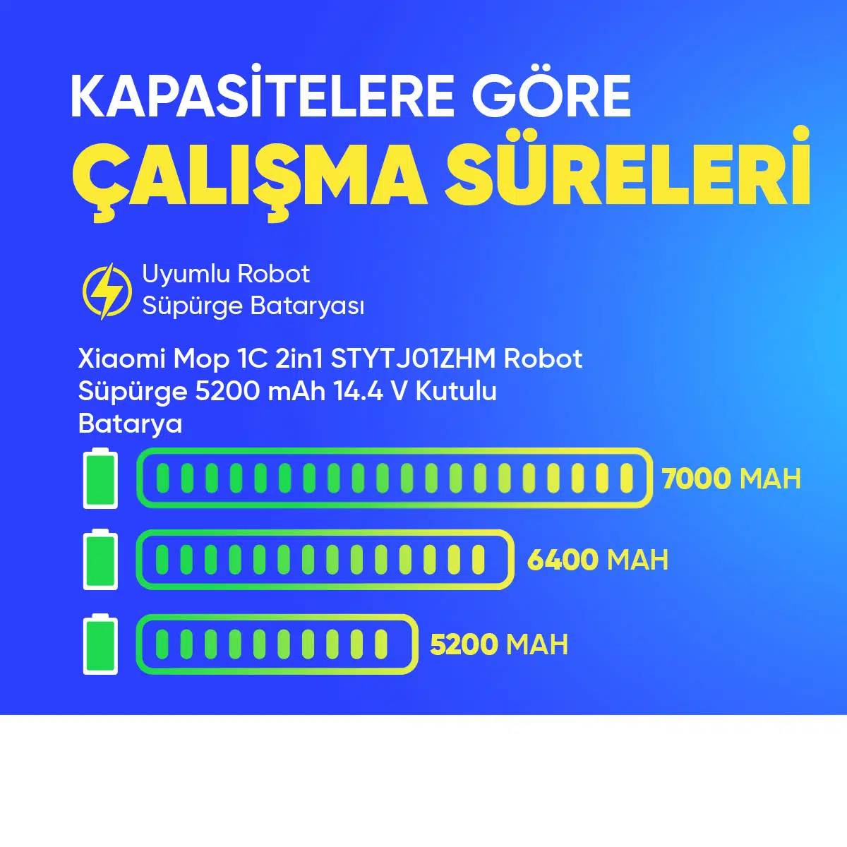 | Etiketler | Xiaomi Mop 1C 2in1 STYTJ01ZHM Robot Süpürge 5200 mAh 14.4 V Kutulu Batarya – Orjinal Uyumlu Uzun Ömürlü, Yüksek Performans Pil |