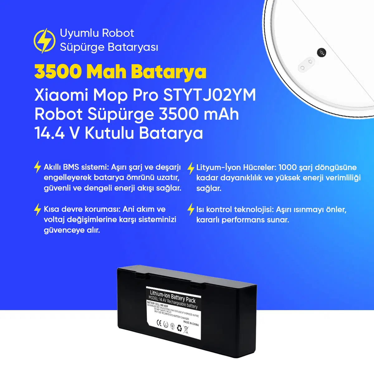 | Etiketler | Xiaomi Mop Pro STYTJ02YM Robot Süpürge 3500 mAh 14.4 V Kutulu Batarya – Orjinal Uyumlu Uzun Ömürlü, Yüksek Performans Pil |